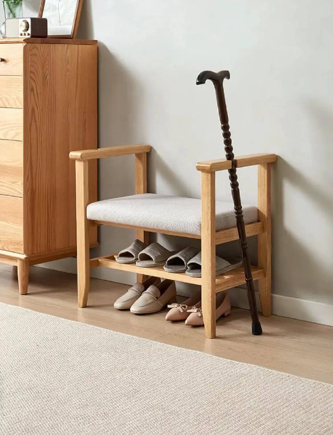 增加換鞋凳的目的是,進出門換鞋時,老人可以安安穩穩的坐着換鞋,無障礙。