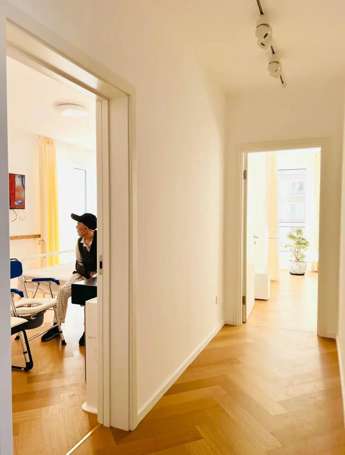 地板更建議選擇木地板,因爲相比瓷磚,木地板的防滑性更好,保護老人摔倒不受二次傷害的同時,與白色牆面對比度也較大,沒有反光,更容易讓老人感知地面。