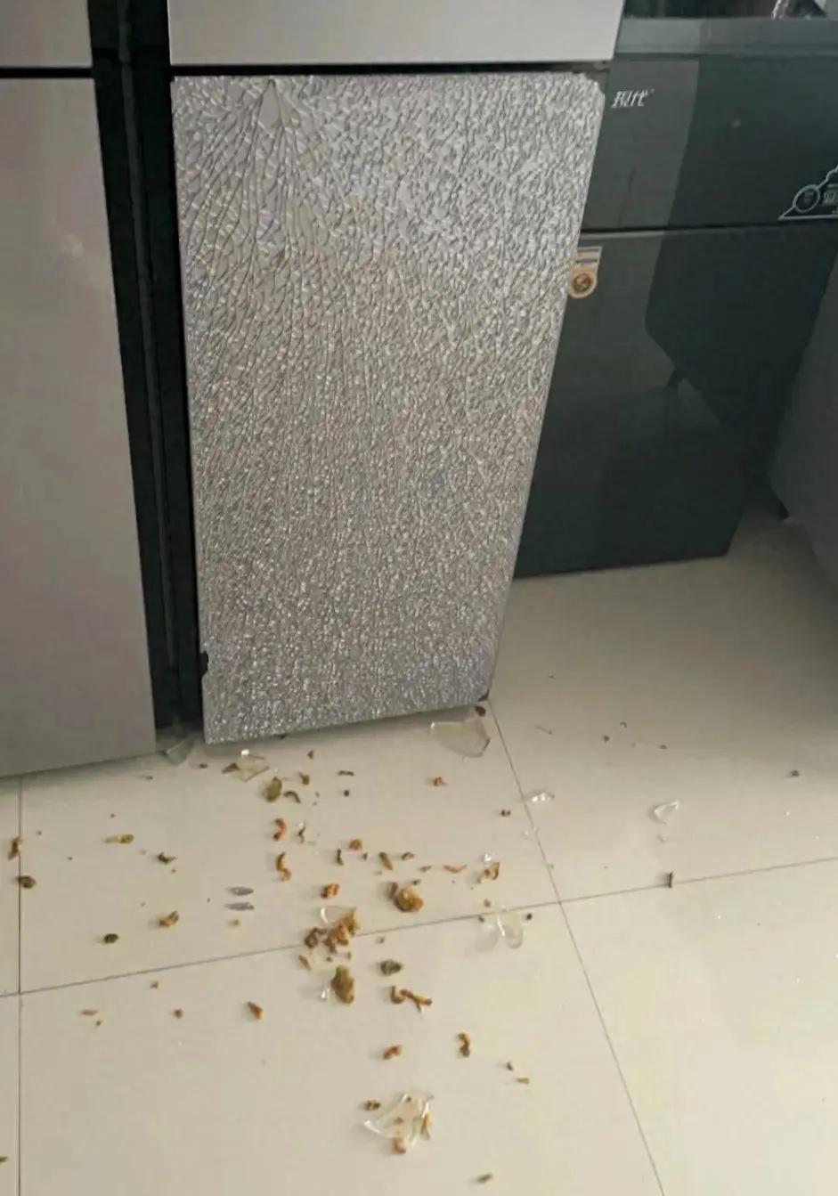這個慘案中,是放碗時,不小心導致的冰箱玻璃門碎了,還有類似的巨多案例,有的是放蠔油瓶碰到冰箱門、甚至有的是啥也沒幹冰箱門就碎了……