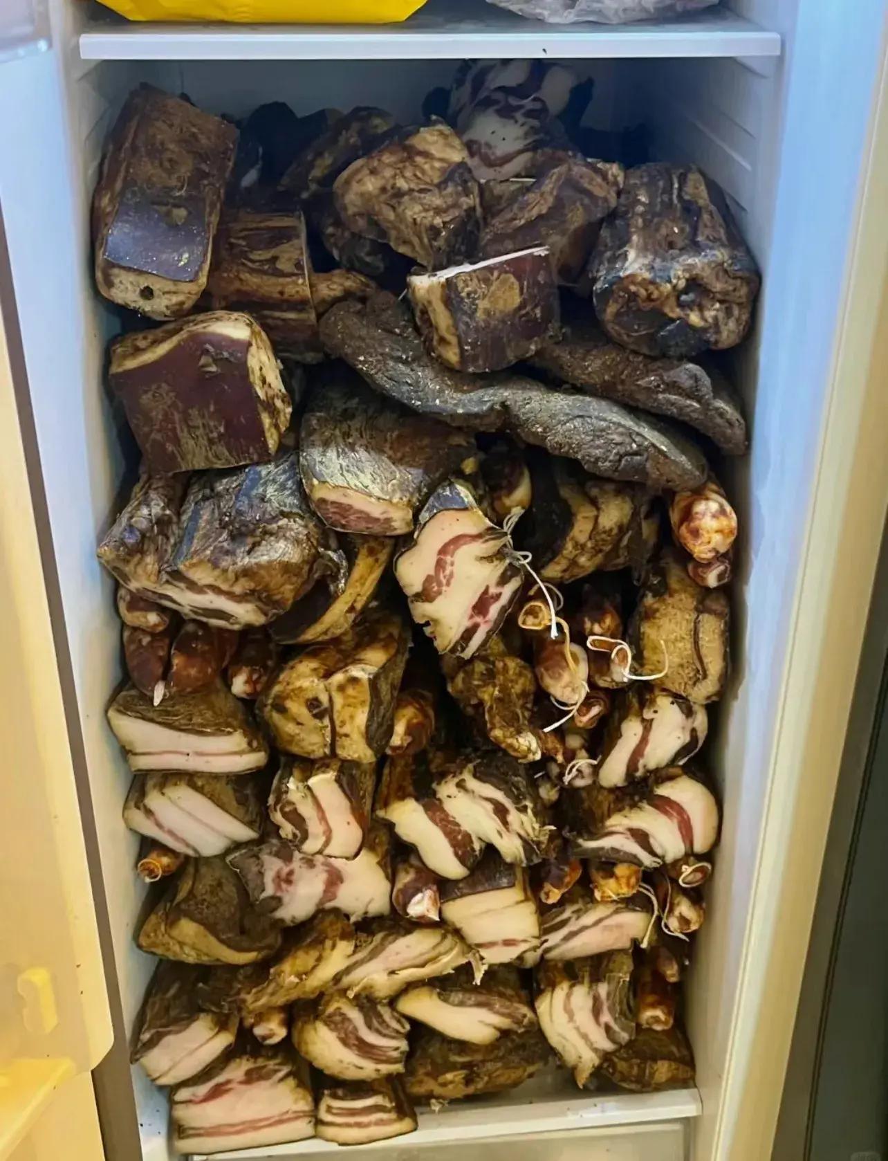 知道的這是冰箱裝臘肉,不知道的,還以爲這冰箱裏是分屍呢!
