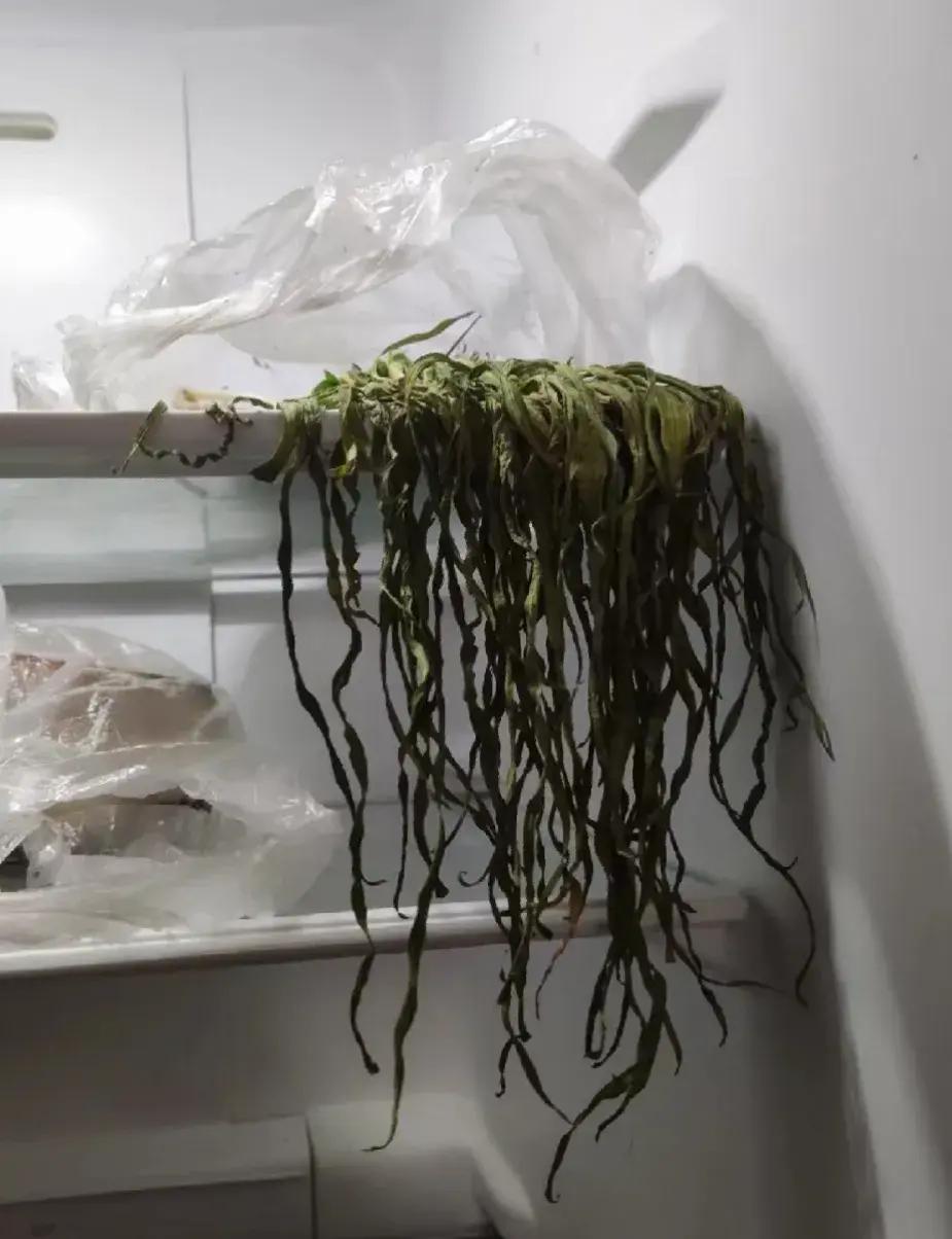 冰箱好久不開,裏面的菜都幹了;