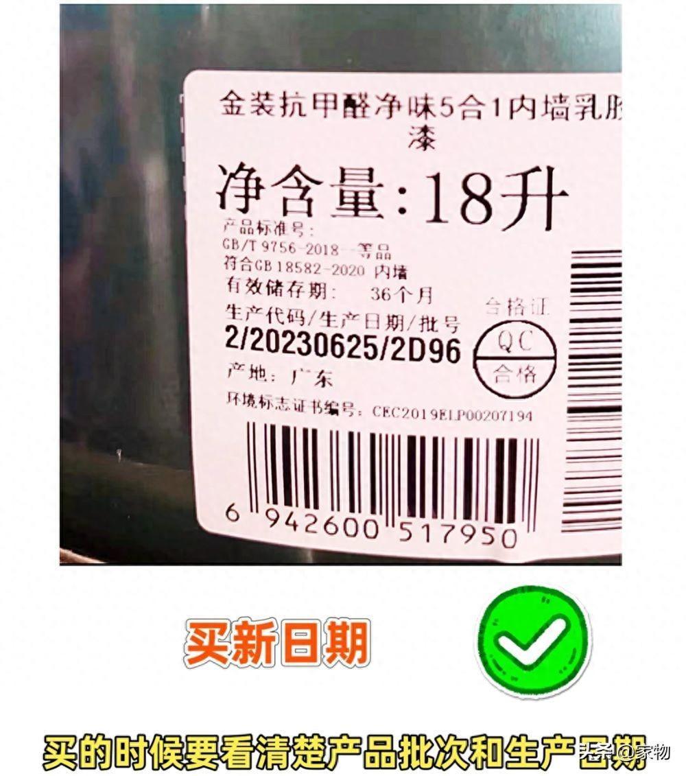 乳膠漆買的時候,最好要注意後面標籤的生產批次以及生產日期,日期自然是越近的越好,過久的日期會讓乳膠漆本身的附着力和耐用性下降,相比之下,最好還是選日期較近的爲好。