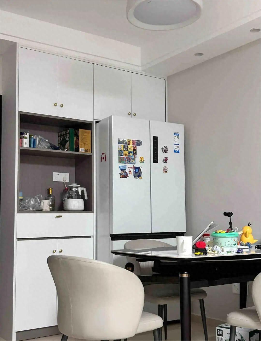 用我這真金白銀買的教訓,提醒要做嵌入式冰箱的朋友,冰箱的厚度一般在60-70cm, 而常規櫃子尺寸最多到60cm,要麼加深櫃子,要麼買最小60cm厚的冰箱,注意兩項匹配。