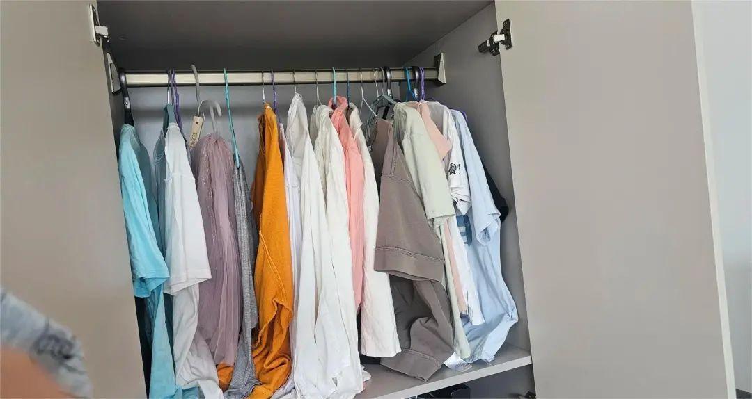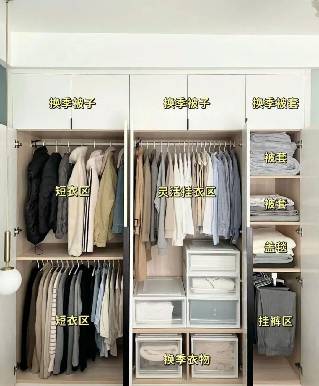 衣櫃的掛衣區佈局,是決定其亂不亂的關鍵。如果掛衣區高度做不對,過長的衣服下面部分皺在一起,看着真的很不舒服。