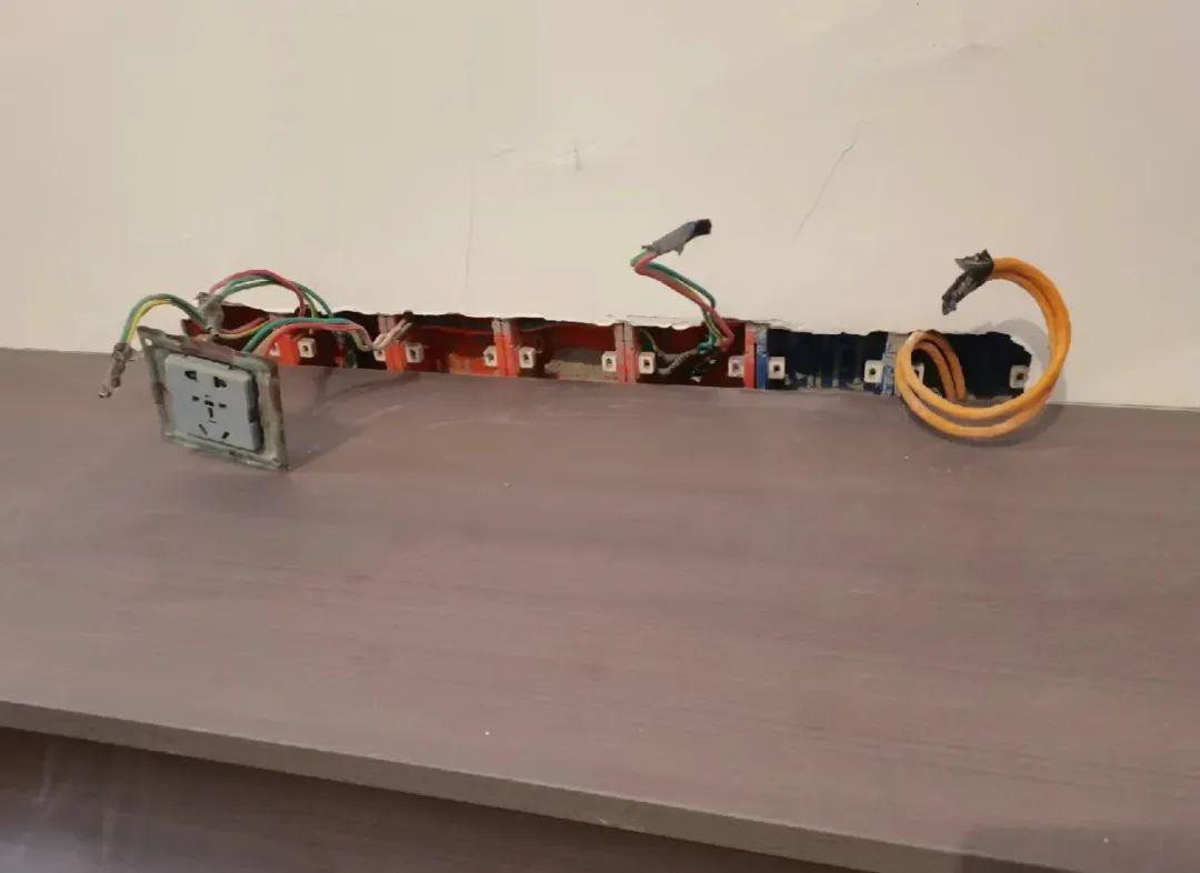 最怕出現,電視櫃剛好卡在插座面板上,只能換電視櫃,別無他法。