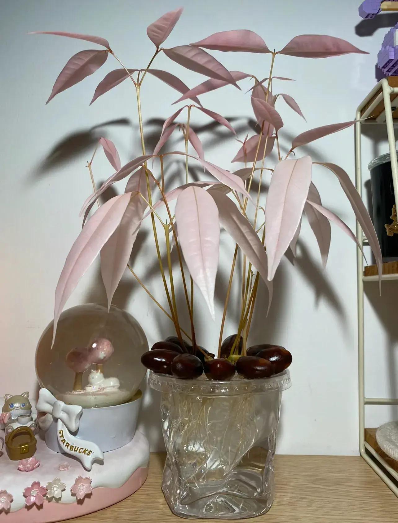 39、荔枝核,可以種出盆栽,培養的時候,把它放進櫃子裏避光,還能種出好看的粉色盆栽;