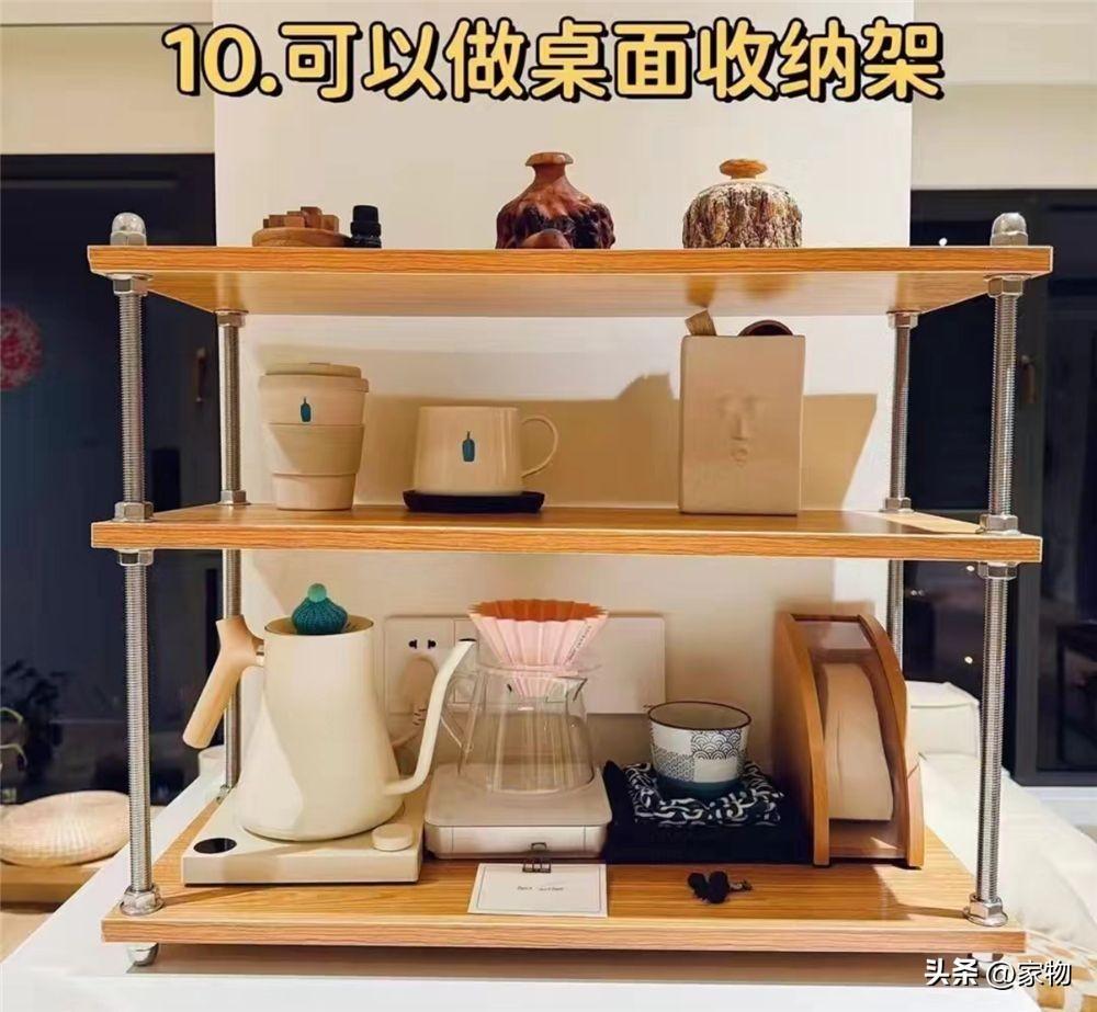 桌面收納整理的架子,基本上用不到什麼大塊的剩木板,一些剩下的小小邊角料,就能做一個多層板的收納架,將各種雜物歸類收納到上面後,桌面會整潔不少。