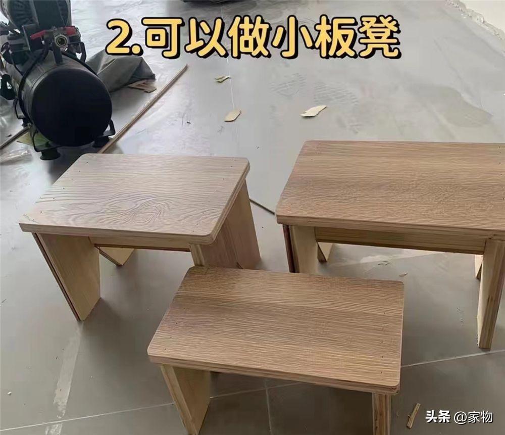 剩下的木板,也同樣可以做成一個個的小板凳,乍一看或許比較簡單普通,但日常生活中有不少的地方都可以用得上它們,可以按照家裏人身高做成高低凳子,也算是定製了~