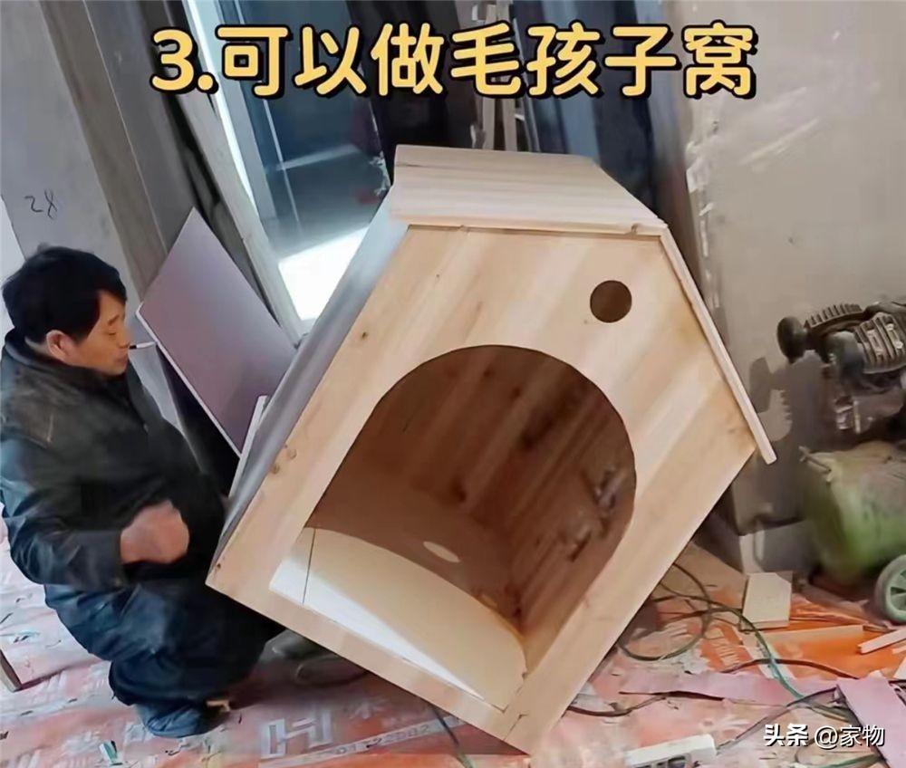 如果家裏空間足夠的話,完全可以用舊木板做一個寵物窩,如果和手藝好的木工師傅打好關係,能做出很多好看且實用的樣式,要知道,現在隨便買個寵物窩,好幾百的比比皆是。