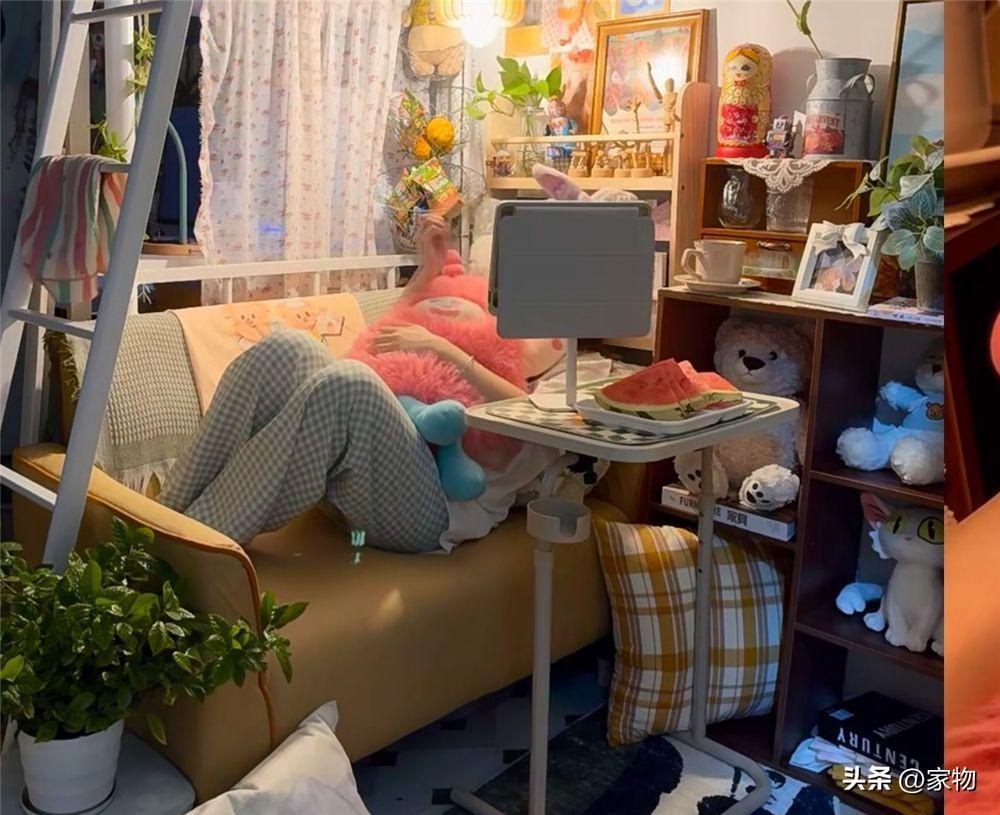 這位廣東姑娘說,自己能在下班回家後有這麼一個小角落臨時休息放鬆,已經是一件非常不錯的事兒了;沙發的周圍也收納了很多擺件玩偶,看起來頗爲溫馨舒適。