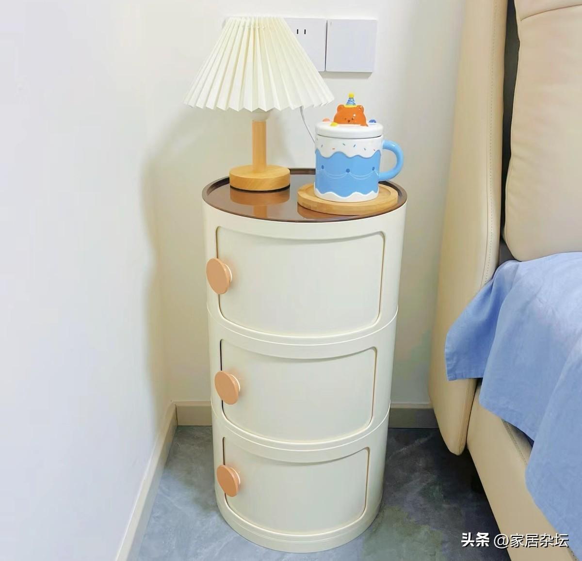這是另外一種造型比較獨特的牀頭櫃,整體的造型就是圓形的。
