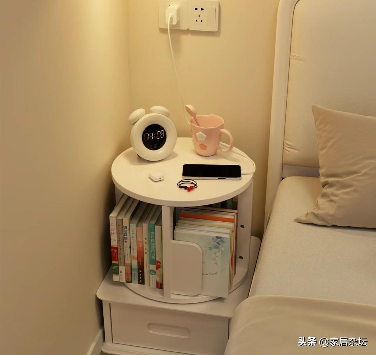 但是,大家想想,把這個旋轉的牀頭櫃塞到牀邊,根本就旋轉不了了。