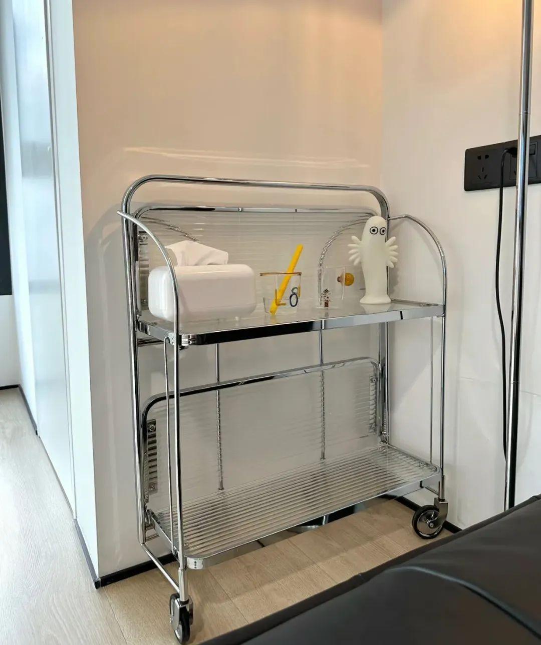 近期最流行的小推車莫過於這款高顏值可摺疊的亞克力小推車,透明的層板仿舊式豎花紋,有種法式中古味;包邊和支架都是不鏽鋼材質,做工細緻,耐磨耐用,銀色金屬有質感又顯高級。