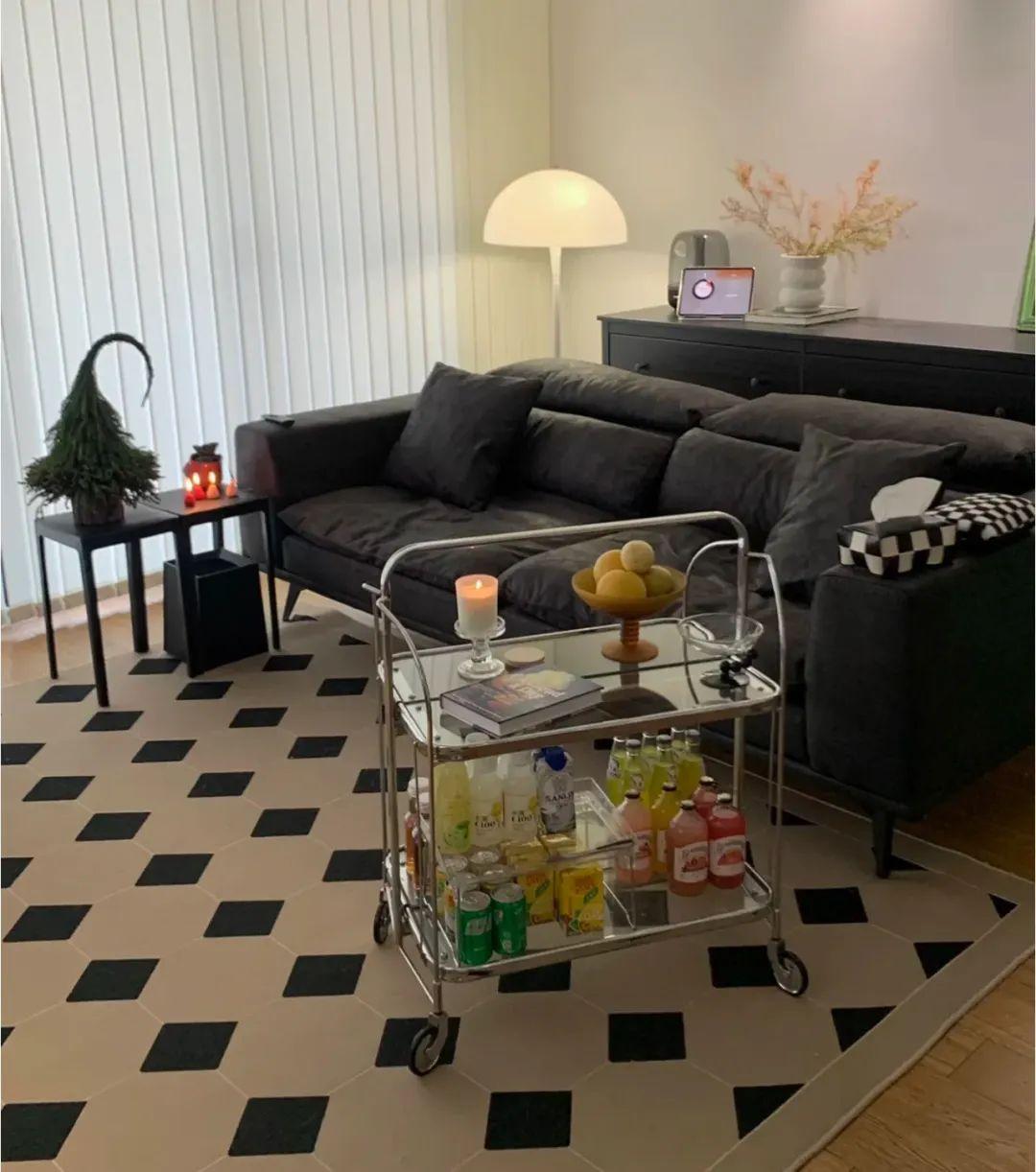 除了地毯,還可以在客廳地面鋪上這種榻榻米牀墊,比較適合獨居人士,公共休息區能隨意臥倒。