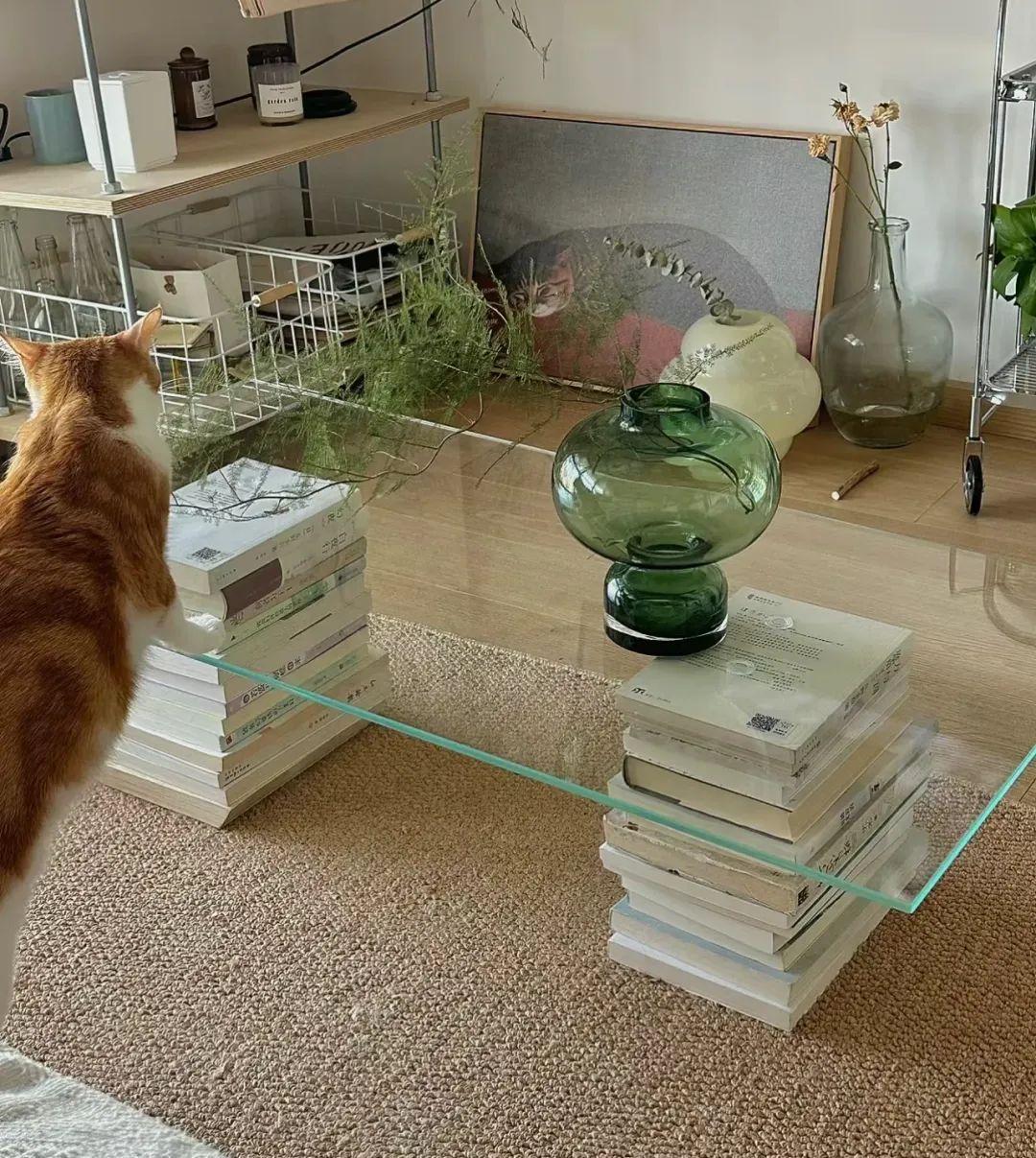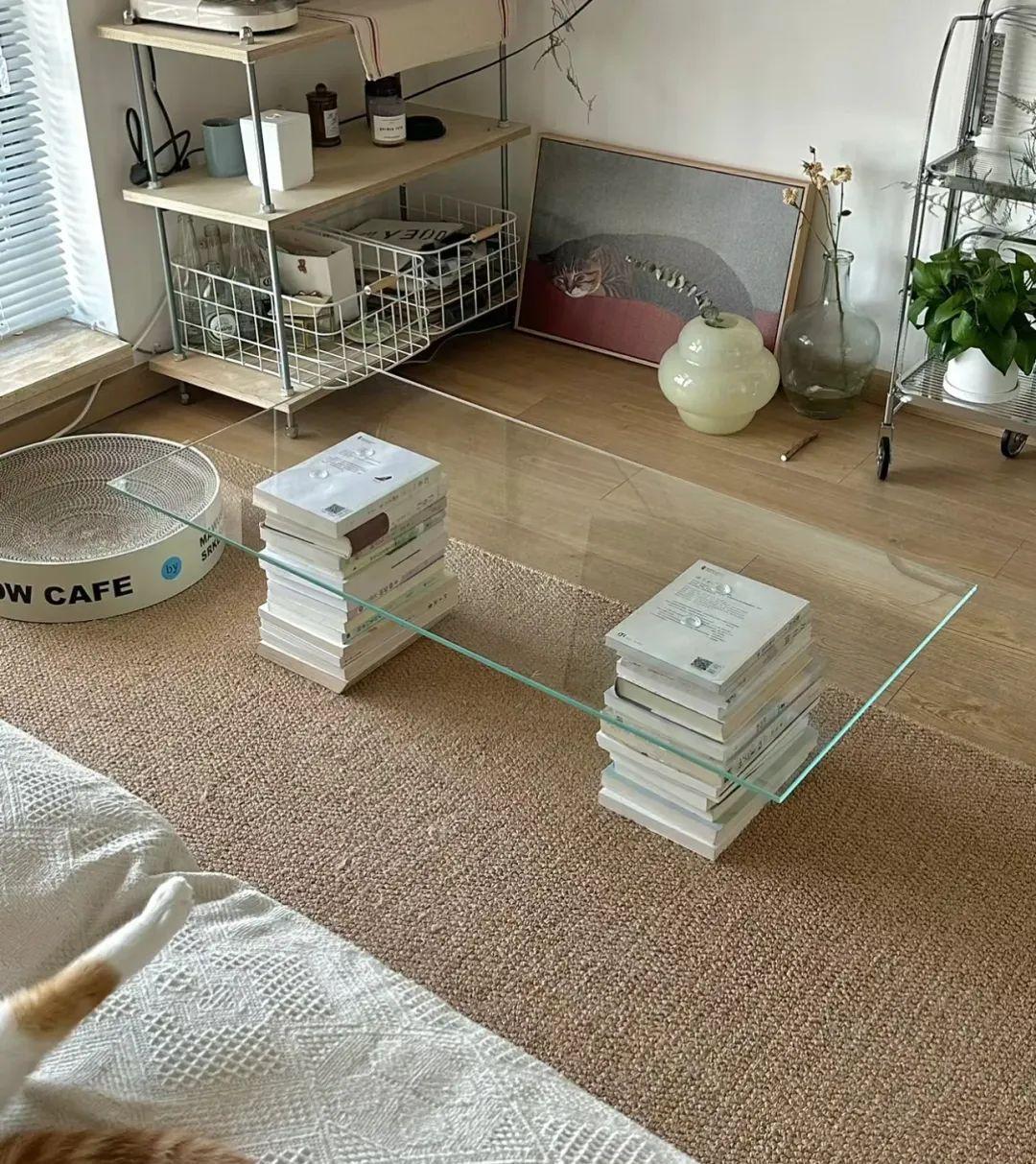 作爲閱讀愛好者一枚,書籍和透明玻璃DIY成的茶几真的讓我眼前一亮。