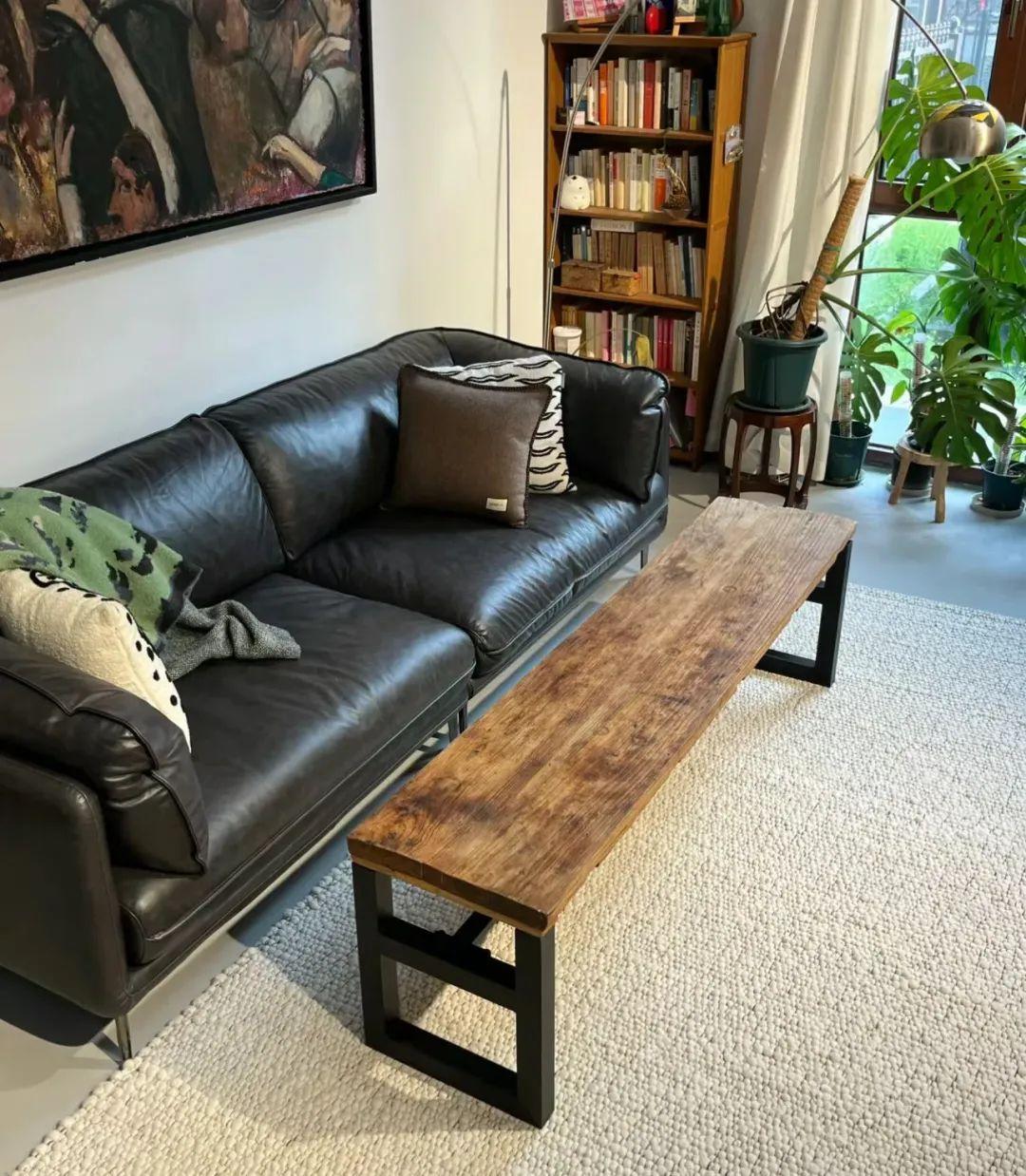 更實用的凳子方案,是類似下圖這種長條凳。既可以喫飯用,也可以當茶几,腿凳,屬於一物多用。雖然凳子面比較窄,但這點恰恰是它作爲茶几的優勢,不會佔用客廳太多面積,挪動也方便靈活。