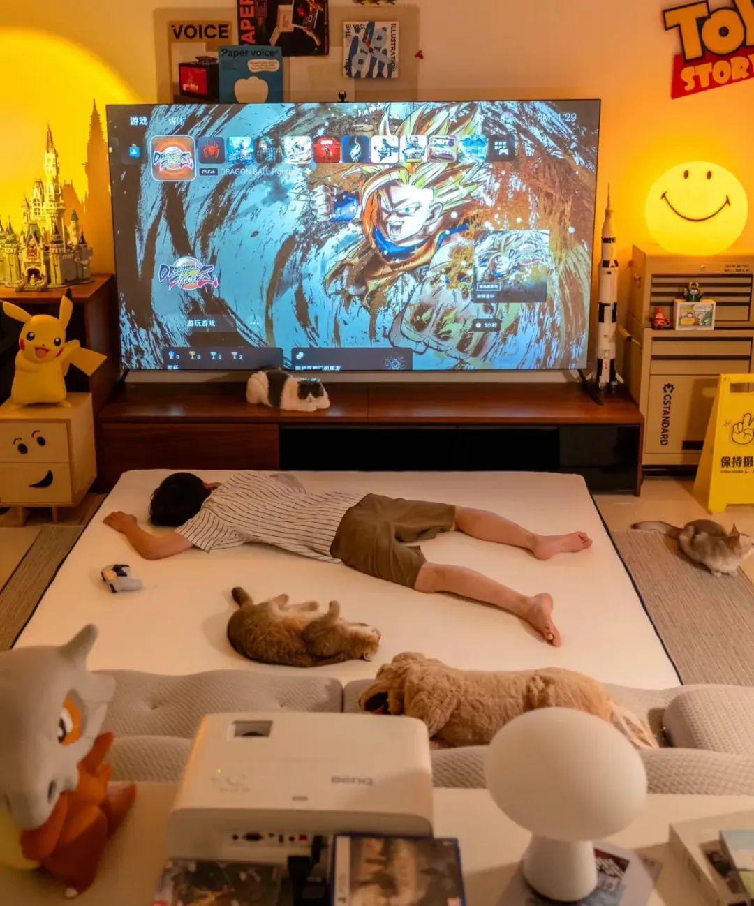 於是,在我家客廳裝修時,我的第一任務,就是在客廳放一個沙發牀。工作了一天回到家,在客廳直接躺下,追追劇,喫點小零食,洗去一身班味~