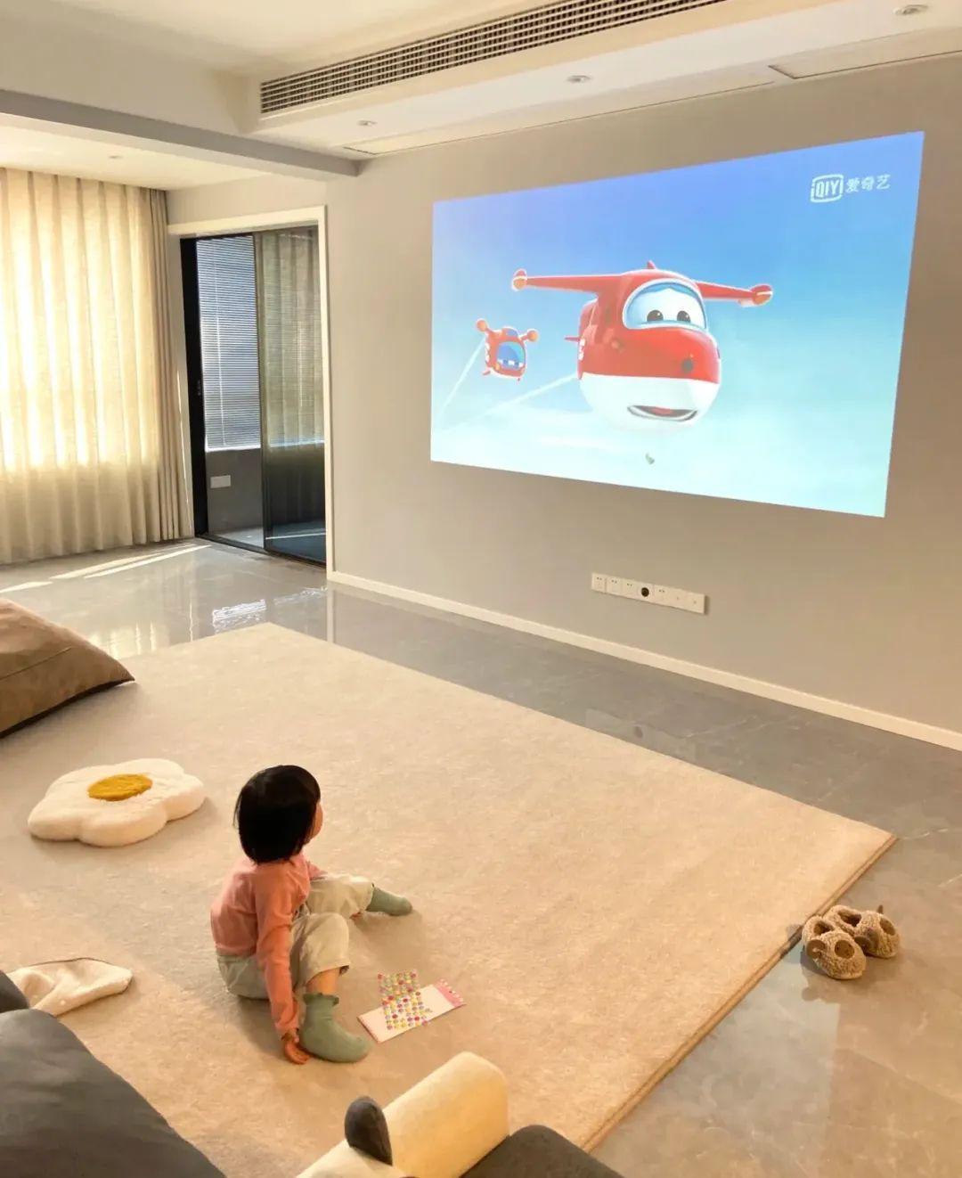 鋪上厚厚的地毯是個不錯的方案,小朋友可以在客廳自由翻滾,玩累了,就地就能睡下,大人也覺得輕鬆舒適。
