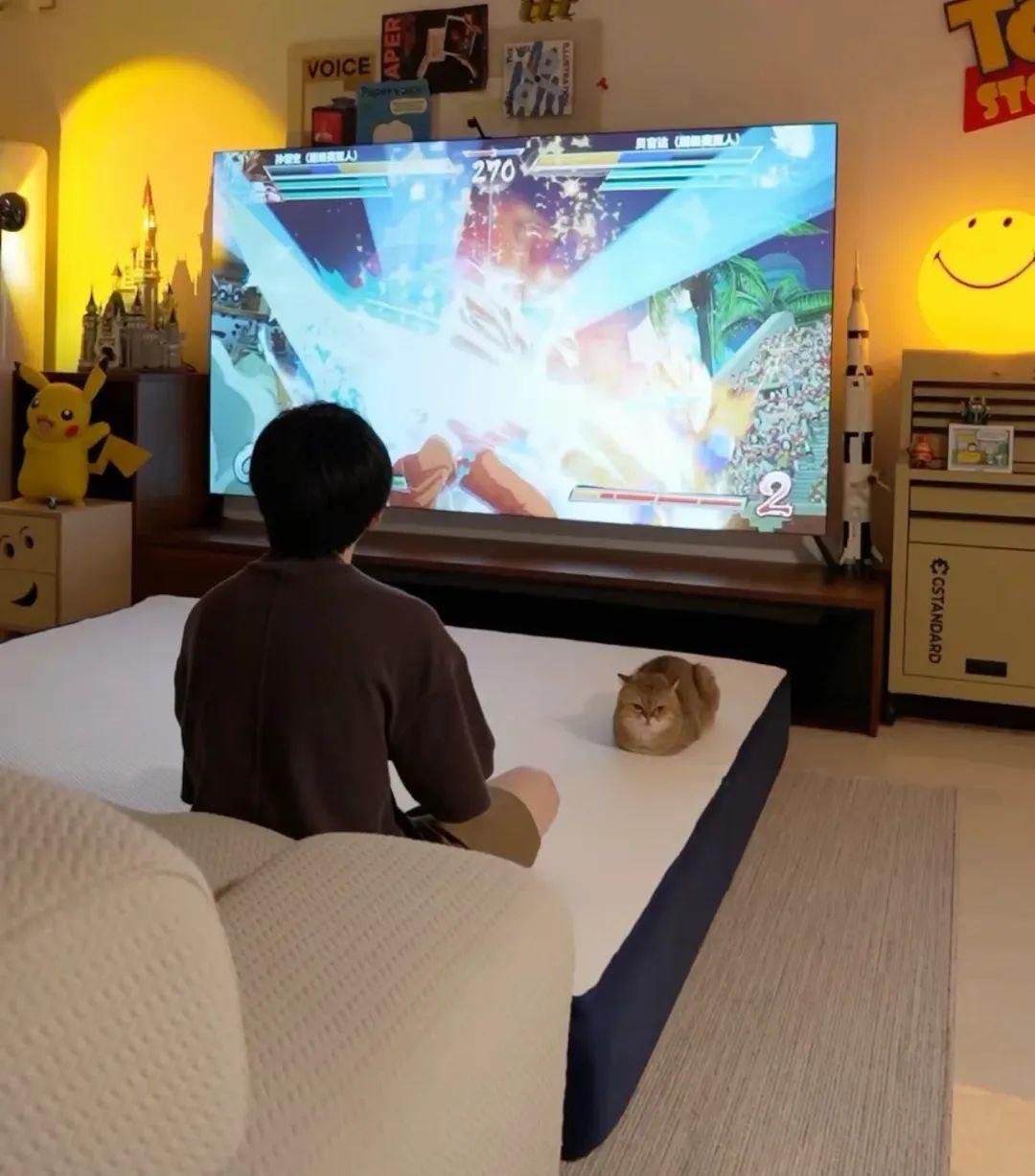 把客廳作爲主要休息場所的朋友,甚至可以把牀墊直接鋪在這,和貓兒子一起躺,快樂的“親子時光”