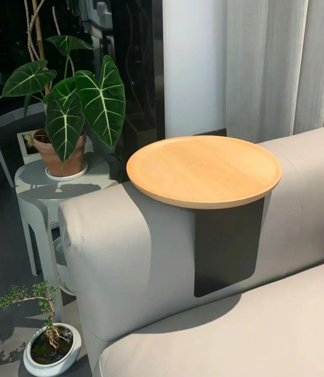 立放時,它的桌腳能塞進沙發底部,變身邊幾,緊貼沙發扶手,不佔空間。
