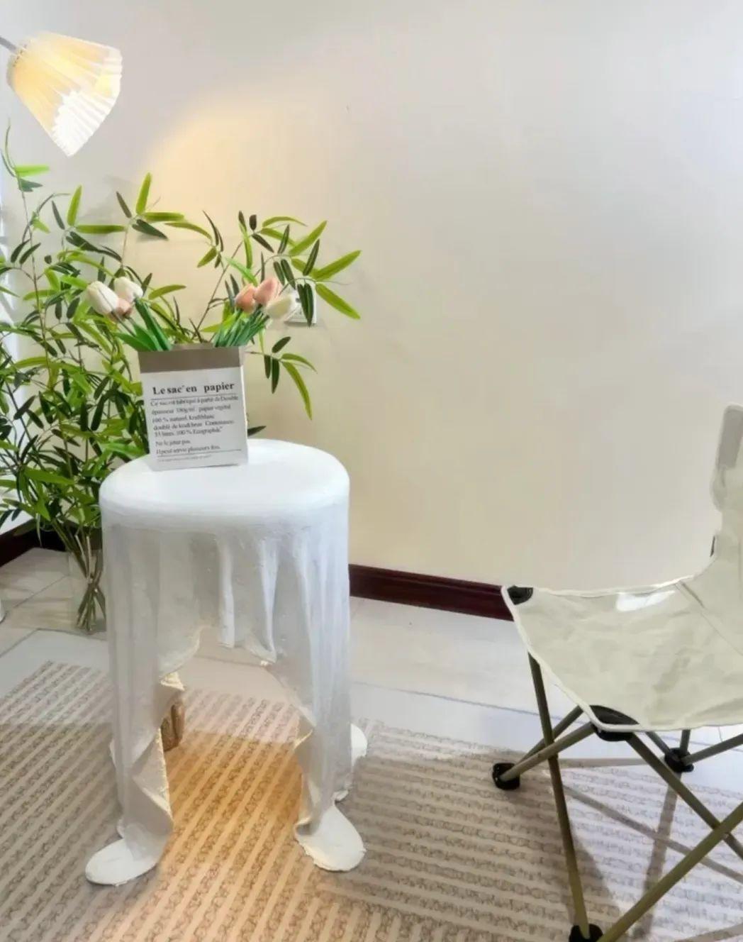 放在客廳一角,配上綠植和懶人椅,在家隨手拍都能出片,雖然失去了一塊毛巾,但是得到了一個ins風茶几!