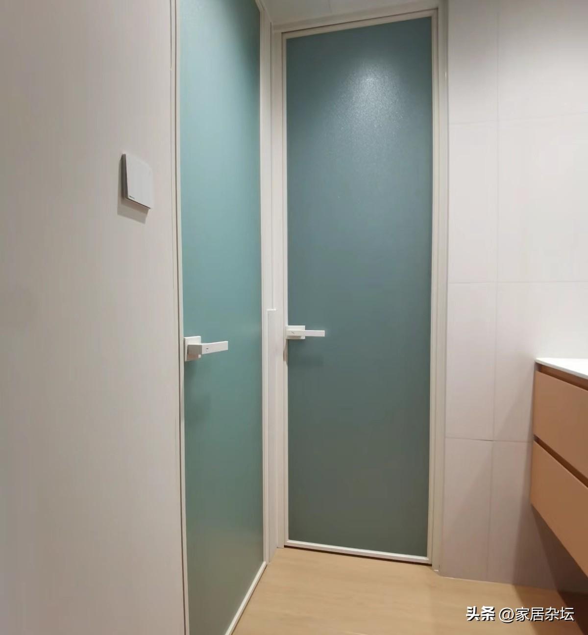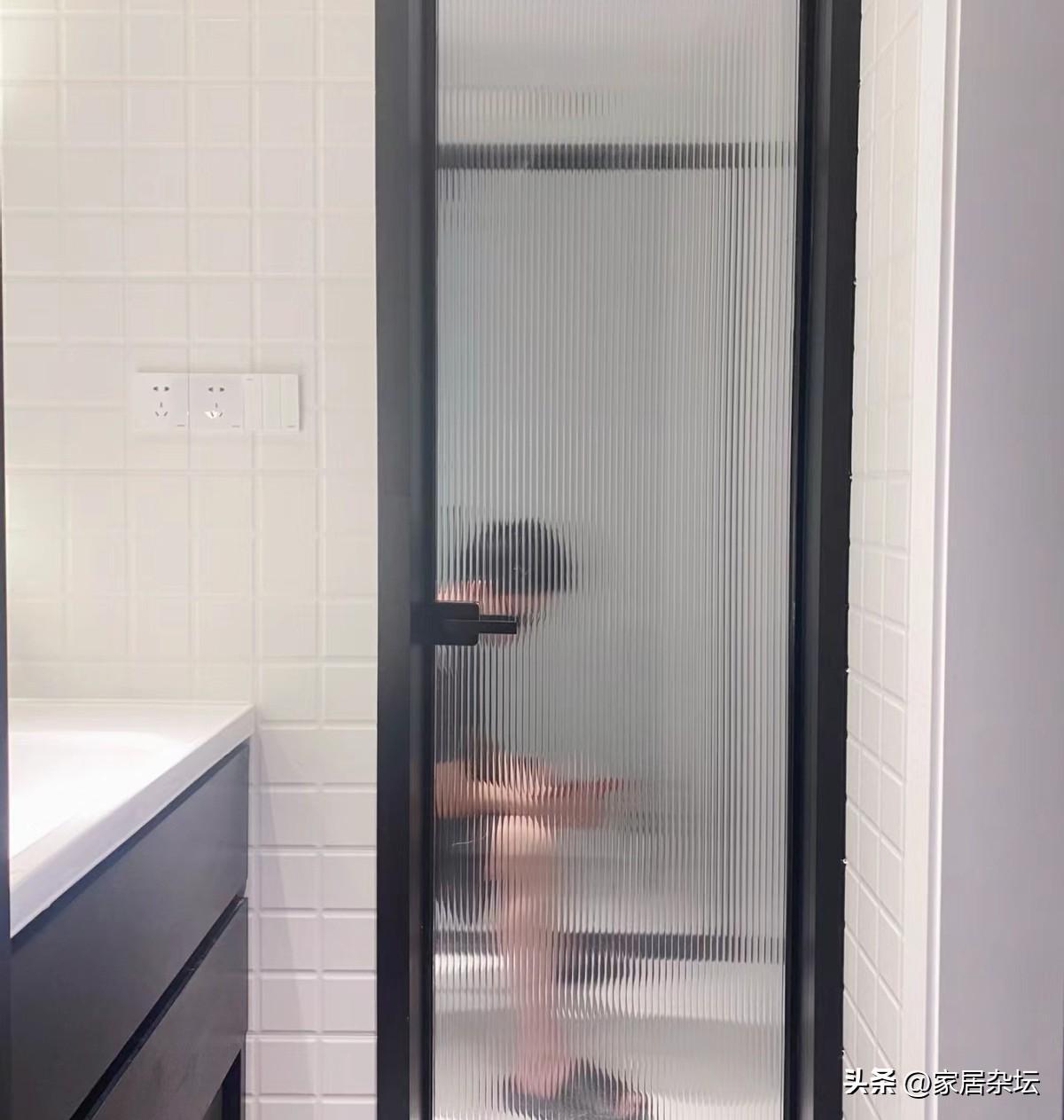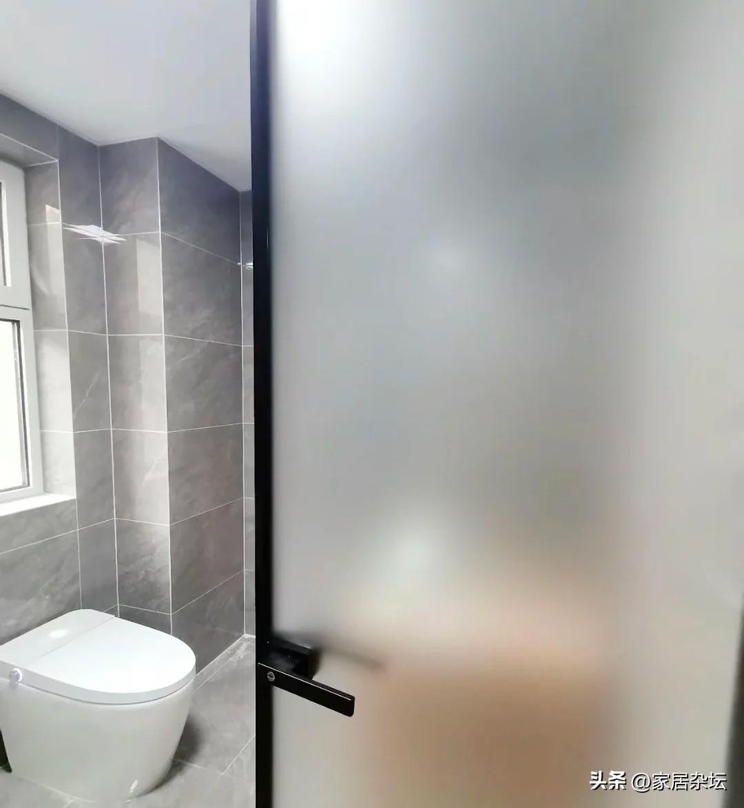 衛生間,建議大家就選擇玻璃門,別再用傳統的木門了。我家裏安裝的這個油砂玻璃,隔音效果真的很好,關了門以後聲音特別小。