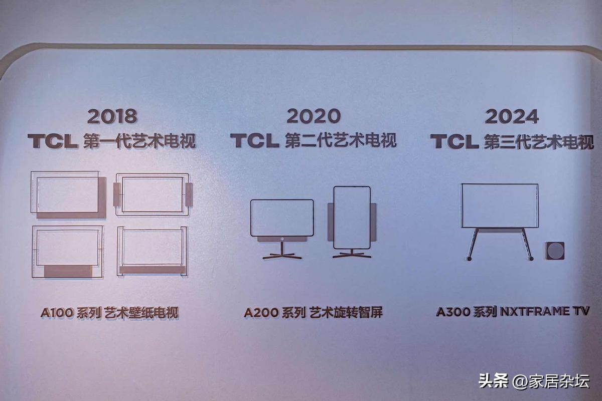 從2018年TCL第一代藝術電視——全球第一臺藝術壁紙電視A100系列的開創性嘗試;到2020年,TCL緊跟着推出橫豎都好看的第二代藝術電視——中國第一臺旋轉智屏A200系列,帶來了全新交互體驗;再到如今第三代藝術電視A300系列,一臺可以自由移動的藝術電視,TCL的每一步都凝聚了對消費者需求的深刻洞察和對藝術生活方式的獨到見解。