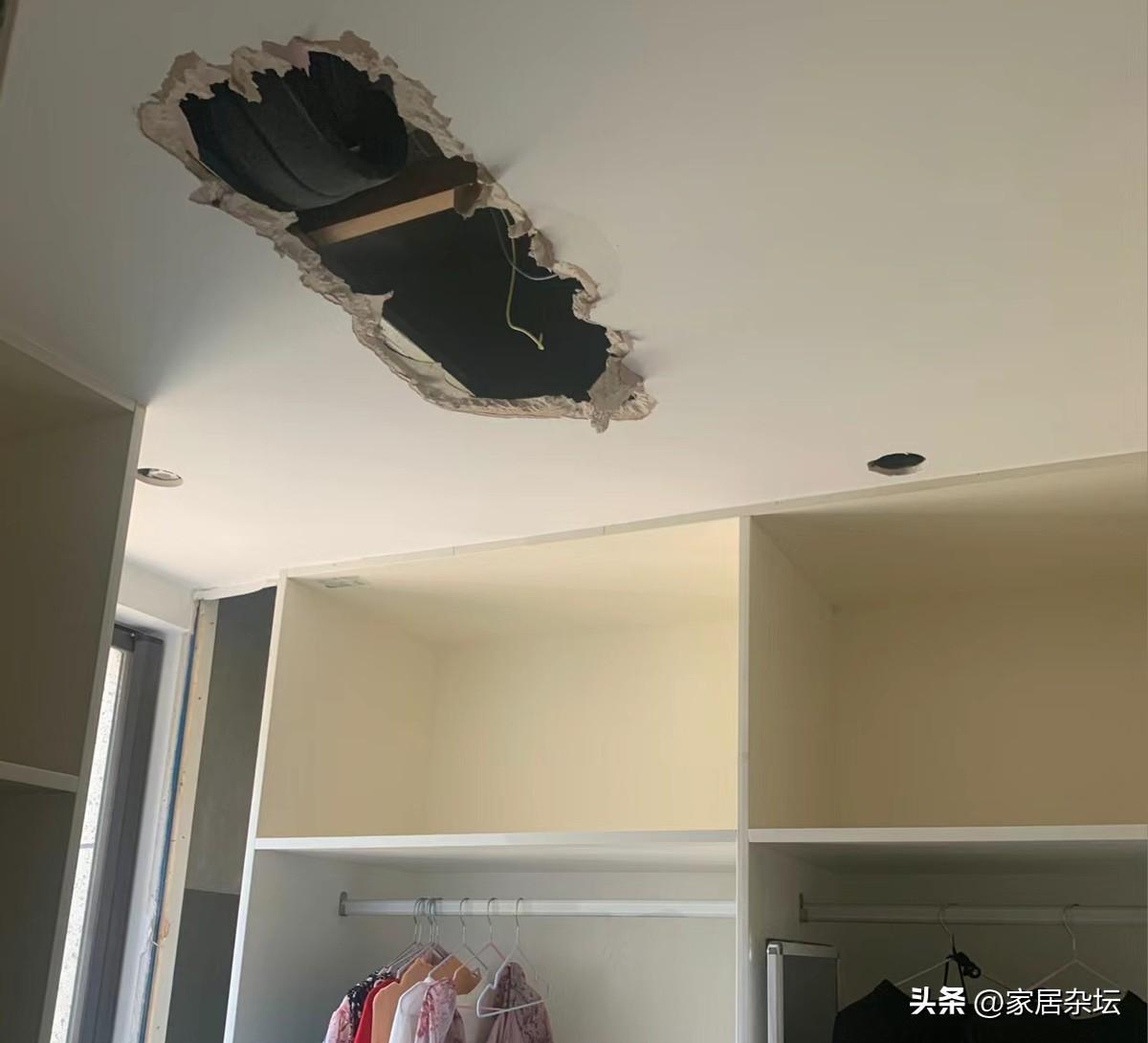 最後,樓上鄰居說他實在忍受不了了,不得不找人將把地板都拆了,吊頂也拆掉了。