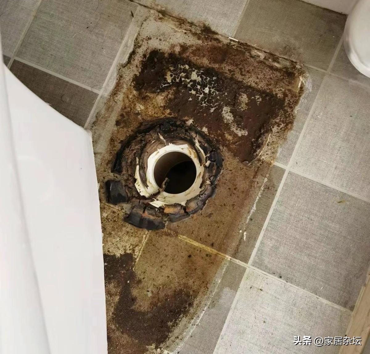 最終找到的反味的位置,就是有一個原來地漏口沒有封堵住。這個地方,甚至都是潮溼的,都發黴了。