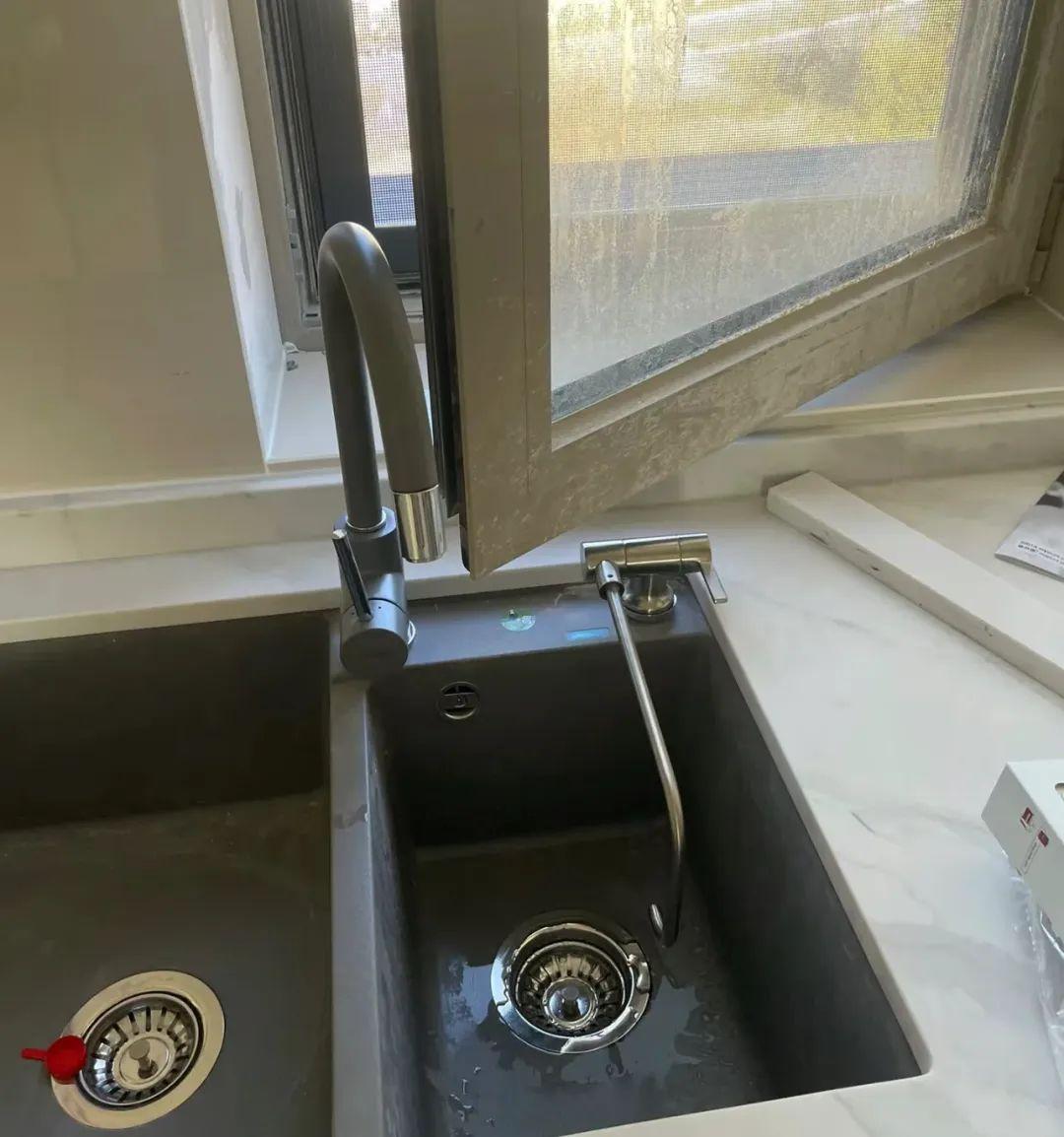 在確定廚房水槽位置的時候,要注意水龍頭是有一定的高度空間需求的,特別要避開窗戶的位置,否則水龍頭和內開窗要打架。
