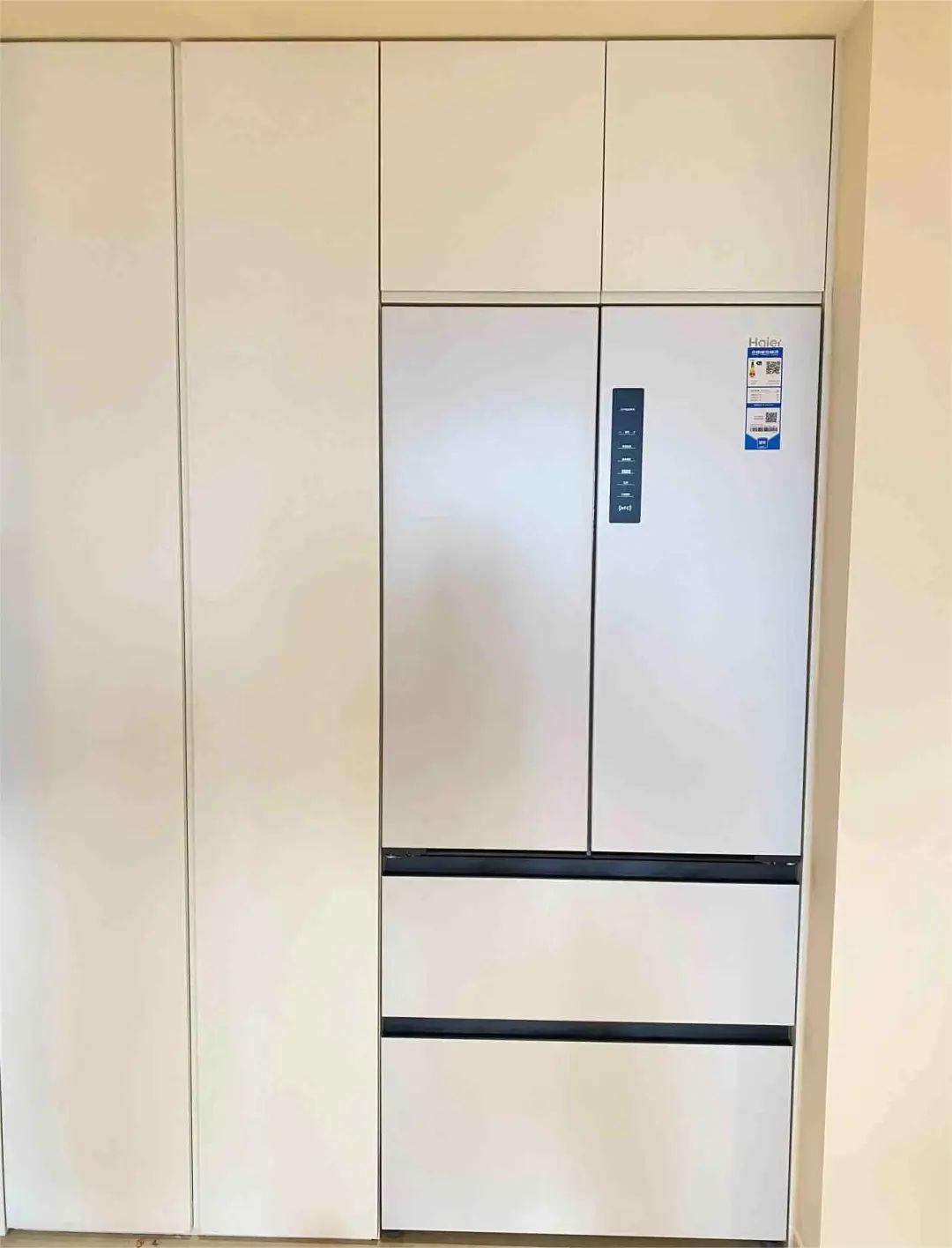 用我這真金白銀買的教訓,提醒要做嵌入式冰箱的朋友,冰箱的厚度一般在60-70cm, 而常規櫃子尺寸最多到60cm,要麼加深櫃子,要麼買最小60cm厚的冰箱,注意兩項匹配。