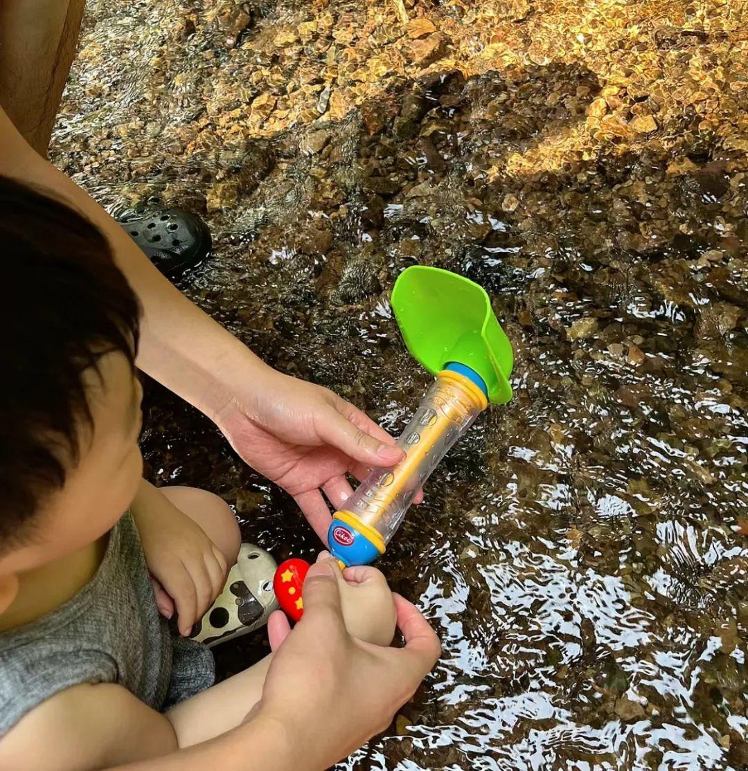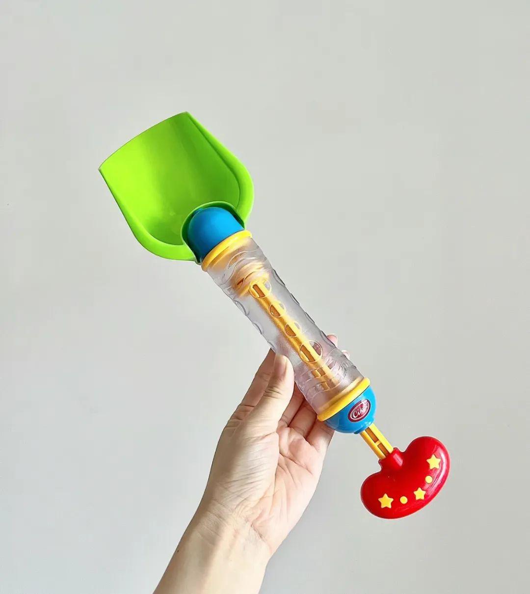 不知道誰發明的,二合一挖沙水槍工具,簡直太省事了!既可以挖沙子,又可以噴水,還能做洗澡玩具!小小一隻,帶出去也很方便。