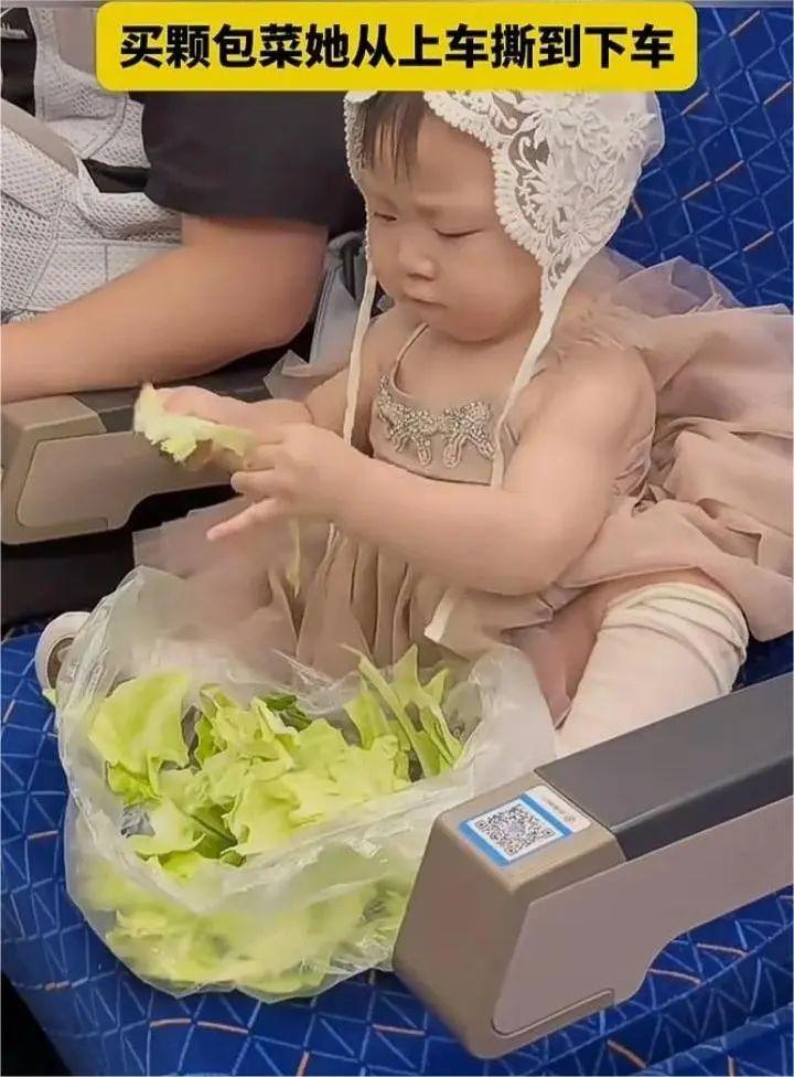 上次刷到有家長帶娃坐高鐵出行,爲了防止小孩哭鬧影響其他人,買了一個大包菜,小孩安安靜靜撕到站,真的被可愛到。