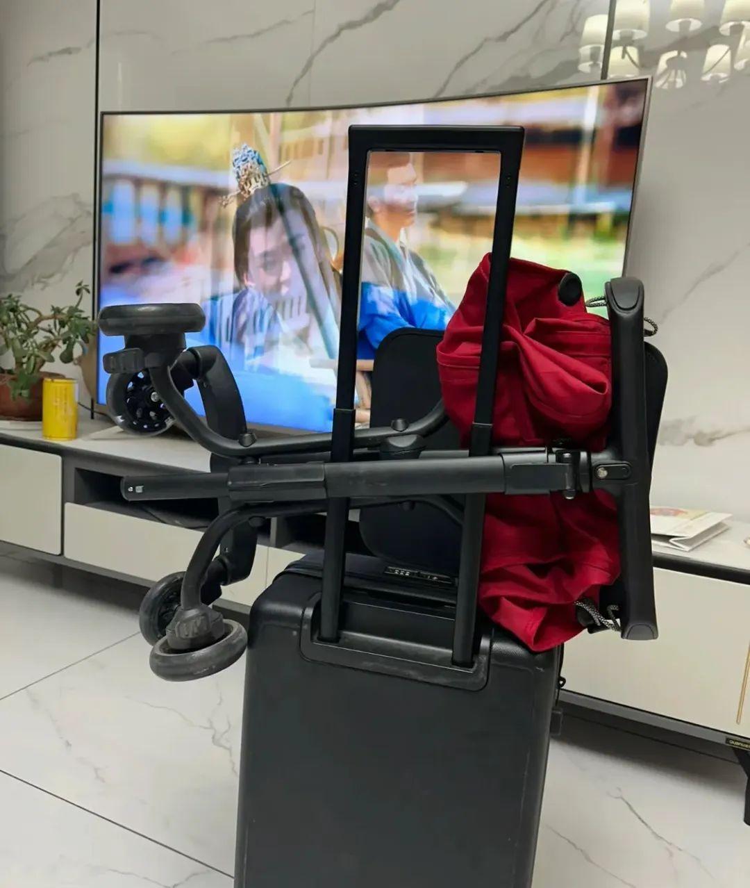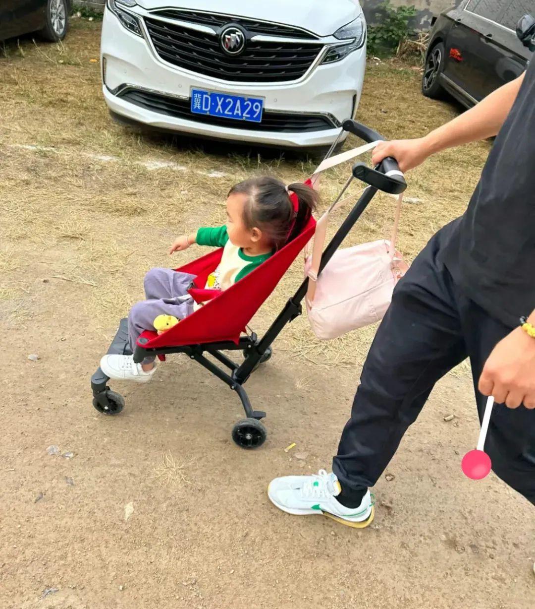 市場上的遛娃神器很多,用了一圈之後,我還是覺得我家這款可摺疊溜娃車最好用,打開合起都很絲滑,收納了之後還能綁在行李箱上,省的手提。