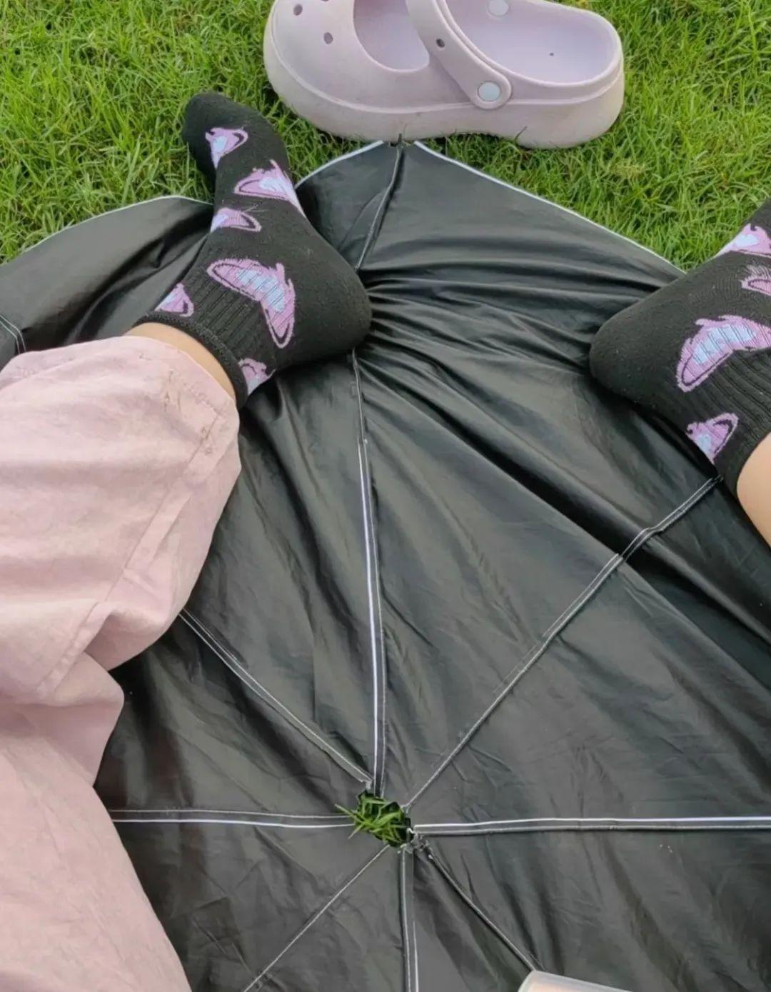 嚴格來說,這是我一次成功的急中生智,出發在即,但是買的野餐墊快遞沒到。正愁着用什麼代替,突然瞧到前兩天壞掉沒來得及扔的雨傘,這不就是現成的嘛!