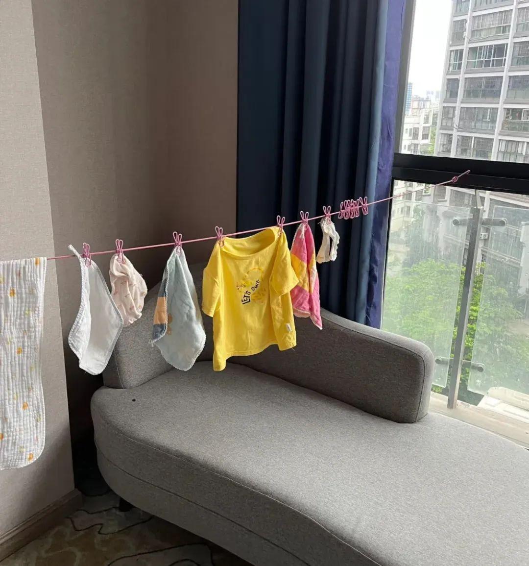 掛衣繩很輕巧,稱重能力卻很強,小朋友每日換洗的大件小件衣物,都能掛住,物美價廉非常好用!