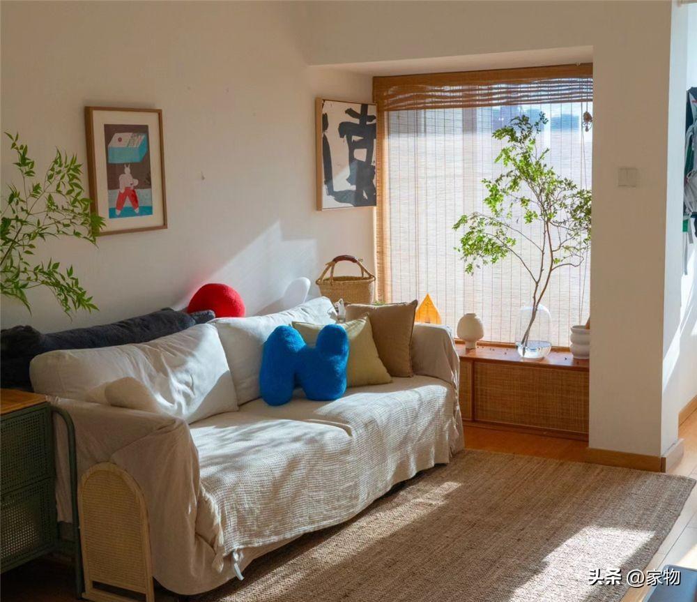 沙發的位置,一張雙人位長沙發不做貴妃榻,既不會佔用太多的空間,又可以給她提供一個比較舒服的休息空間,週末休息時窩在這張沙發上曬曬太陽,真的是太爽了。