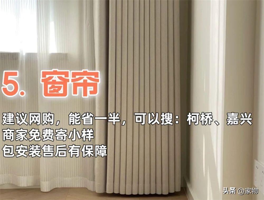 窗簾和燈具也是一樣的道理,能網購就儘量去網購,兩者唯一不同的地方,就是買窗簾的時候最好先要個小樣,大部分網購窗簾現在都能包安裝,只要確定面料樣式,就比在線下買合適很多。