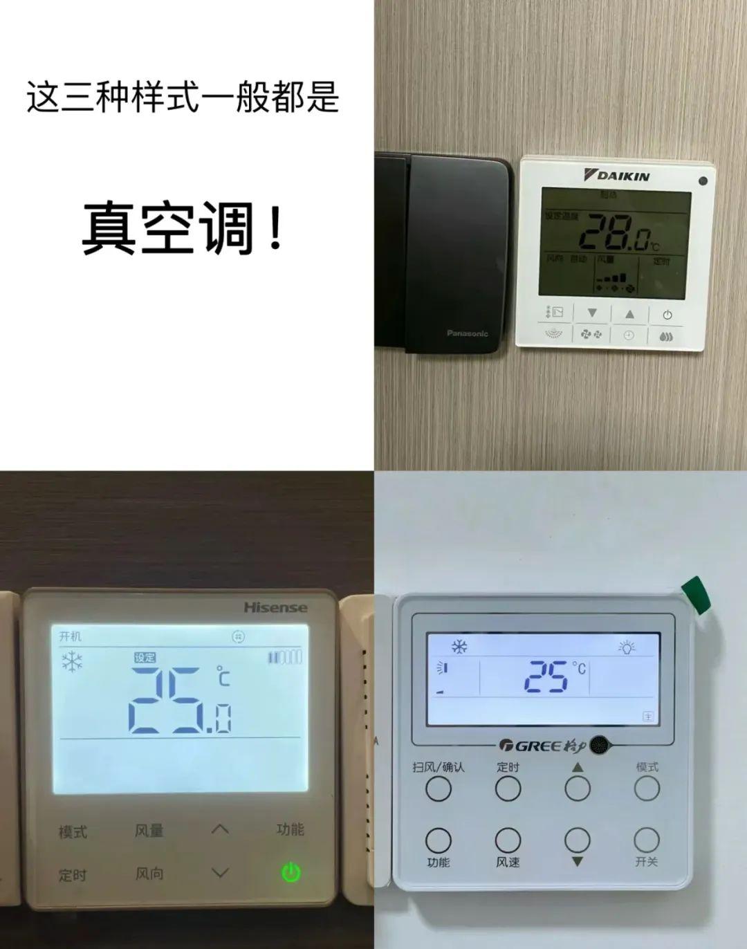 長這種樣式的中央空調面板基本都是假空調,連個品牌logo都沒有。