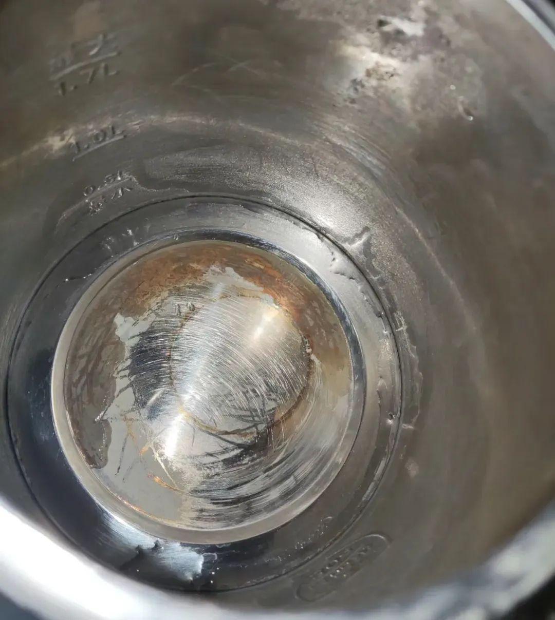 電熱水壺裏的超厚水垢,這是洗了三回之後的樣子,一點也用不了,白費力氣...