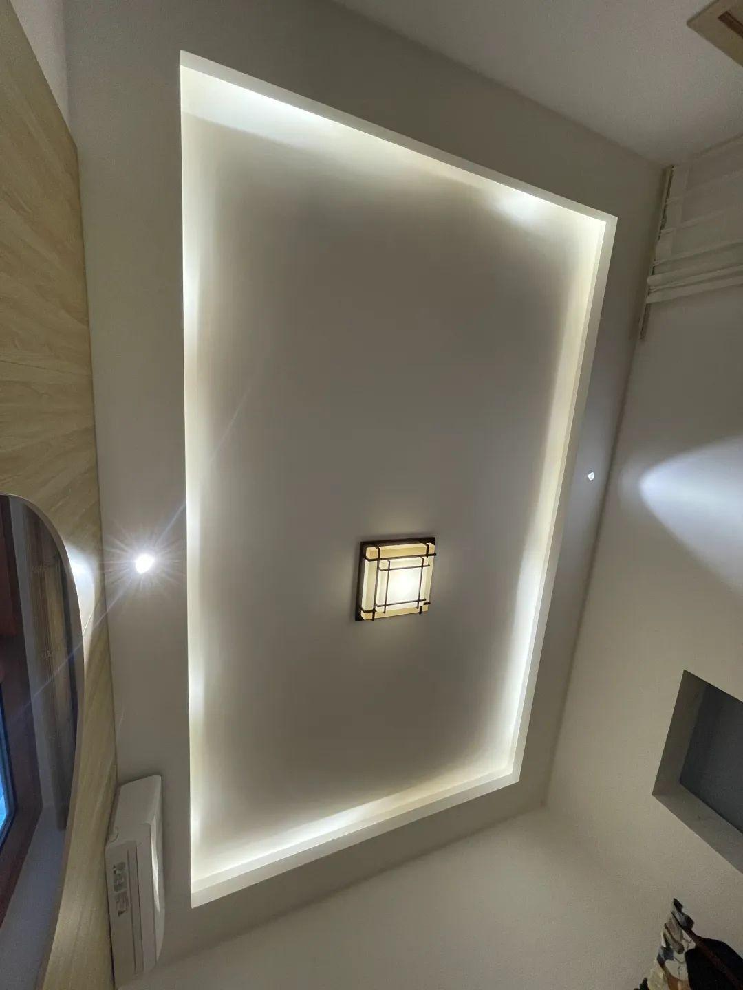 有的酒店房間石膏吊頂裏埋燈帶,但是又埋的很粗糙,不知道燈管卡槽是被什麼擋住,打出來的光圈坑坑窪窪,非常之抽象...