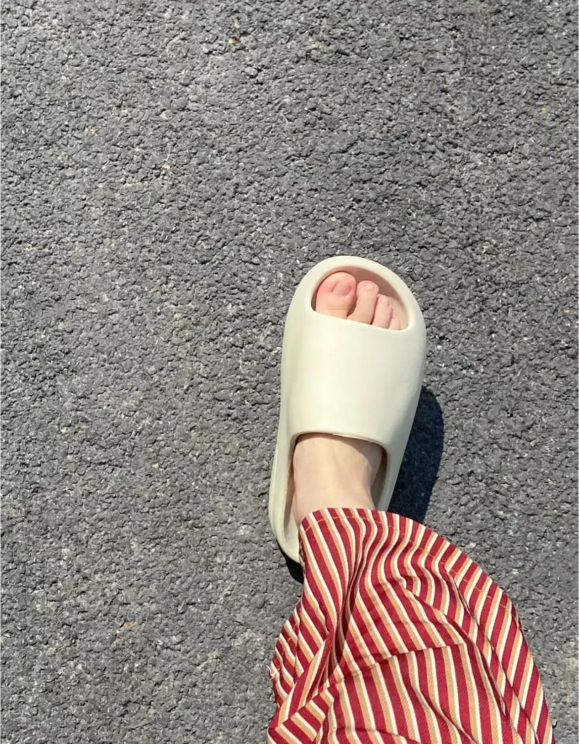 對於汗腳,一體成型的eva拖鞋就更友好,沒有了溝壑藏污納垢,發臭的幾率就會減少許多。