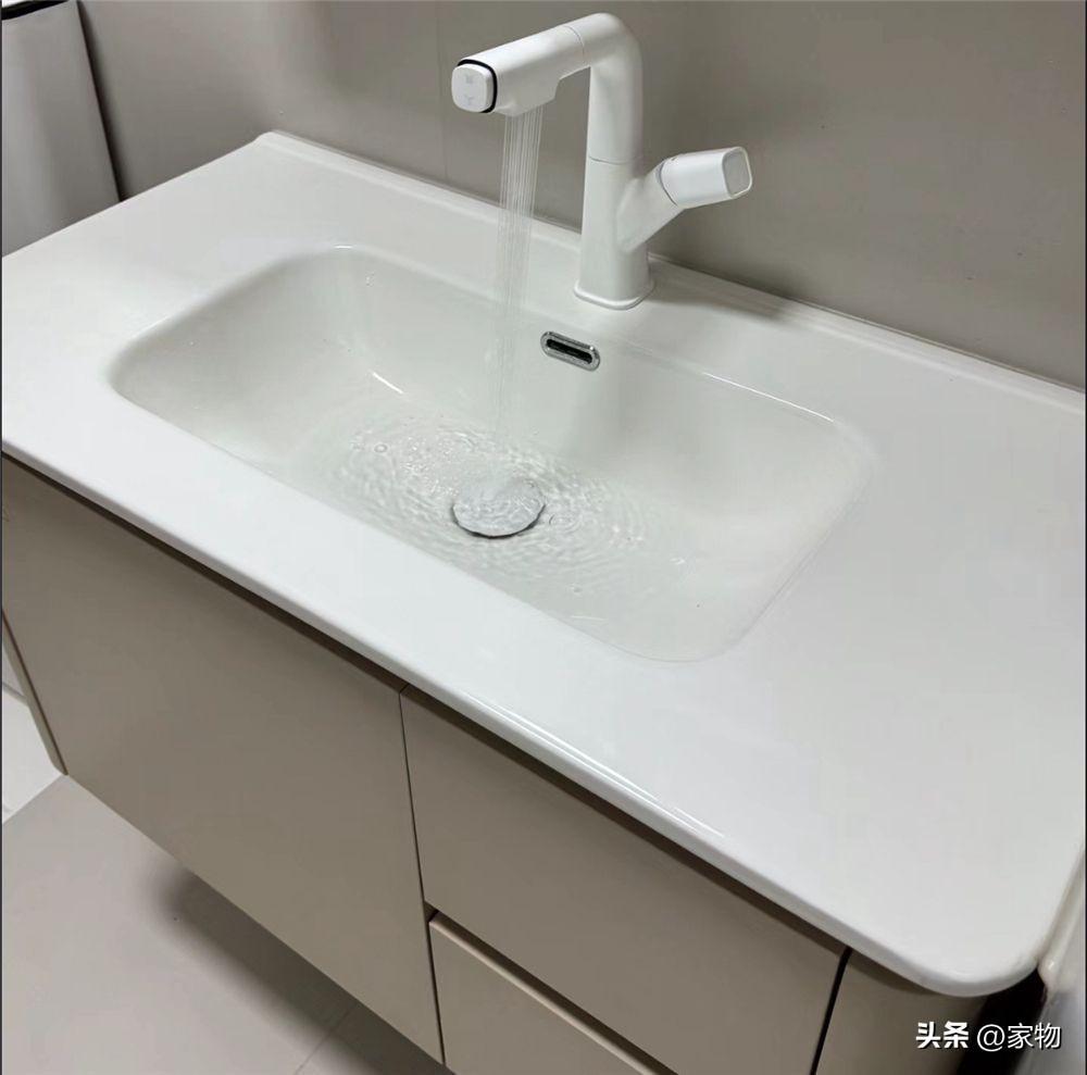 洗手池的檯面也做成了陶瓷一體盆,並沒有選擇做拼接式的巖板臺,這樣做的好處很明顯,不僅方便清潔檯面上的污漬,也沒有縫隙藏污納垢、不用擔心拼接處玻璃膠發黴變黑。