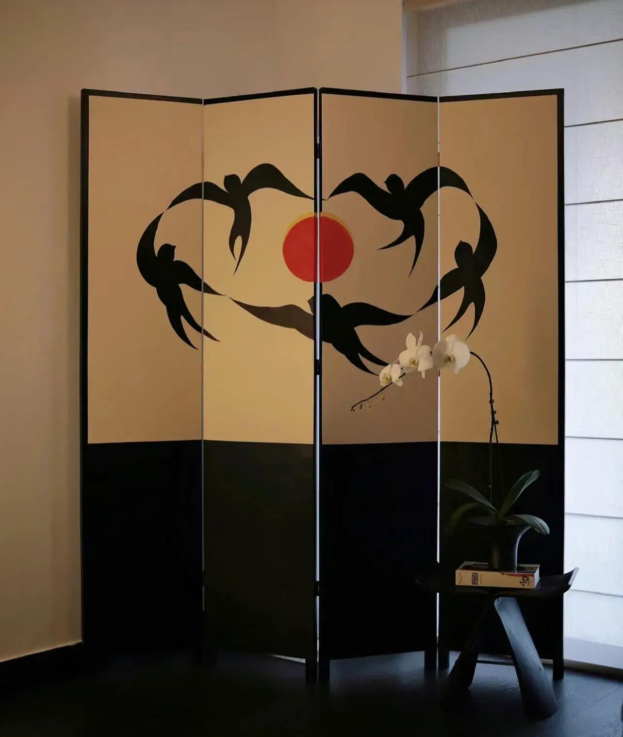 什麼意思?就是家裏其他物件的顏色,應該都出現在屏風上,如此才能保證色彩搭配的和諧,給人不亂的感覺。