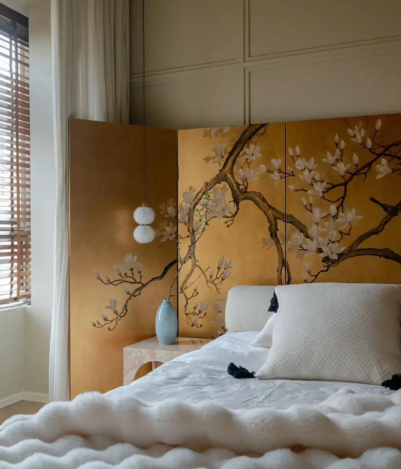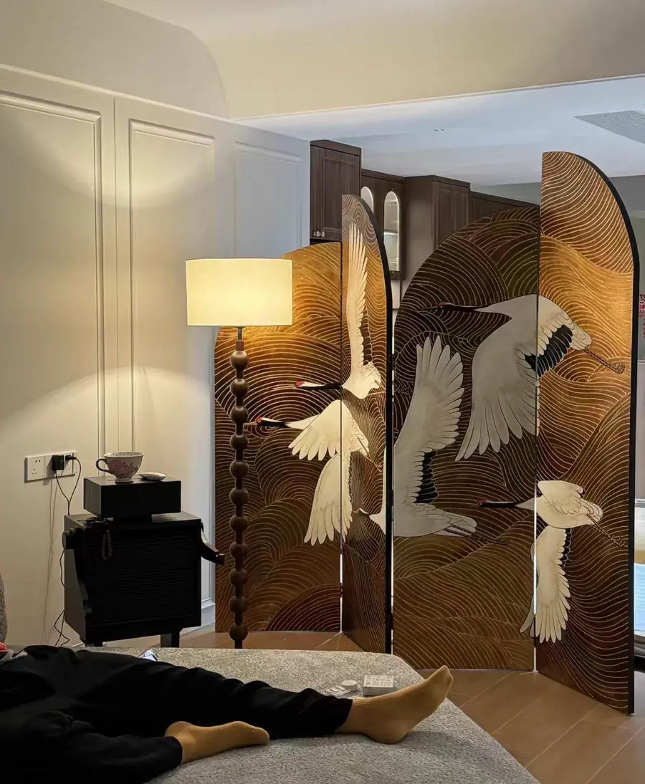 造景這塊,簡直就是屏風的本命用途,因爲其圍合功能的加持,可以說沒有任何一個傢俱,能在造景上,勝過屏風,不信你看下面這些場景: