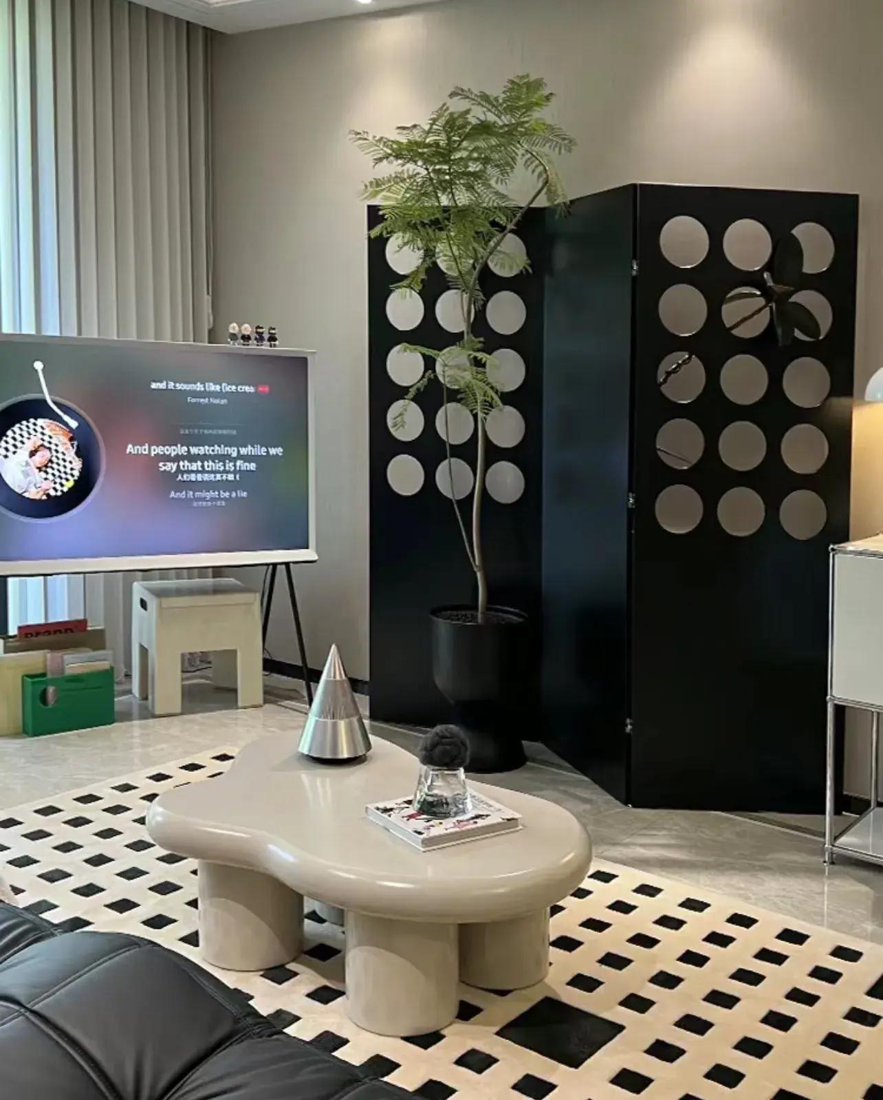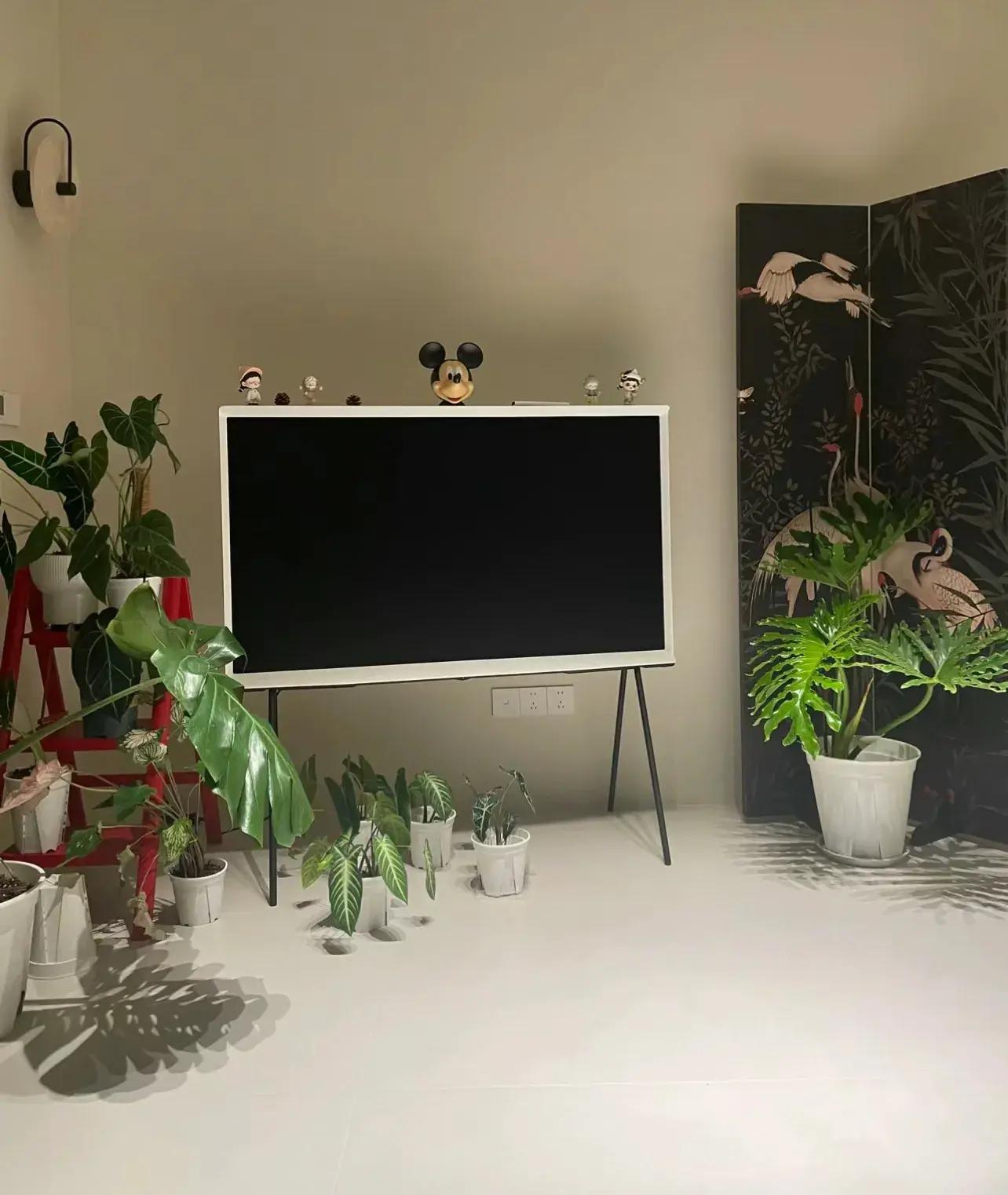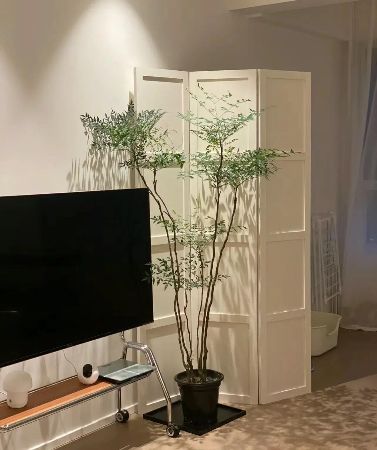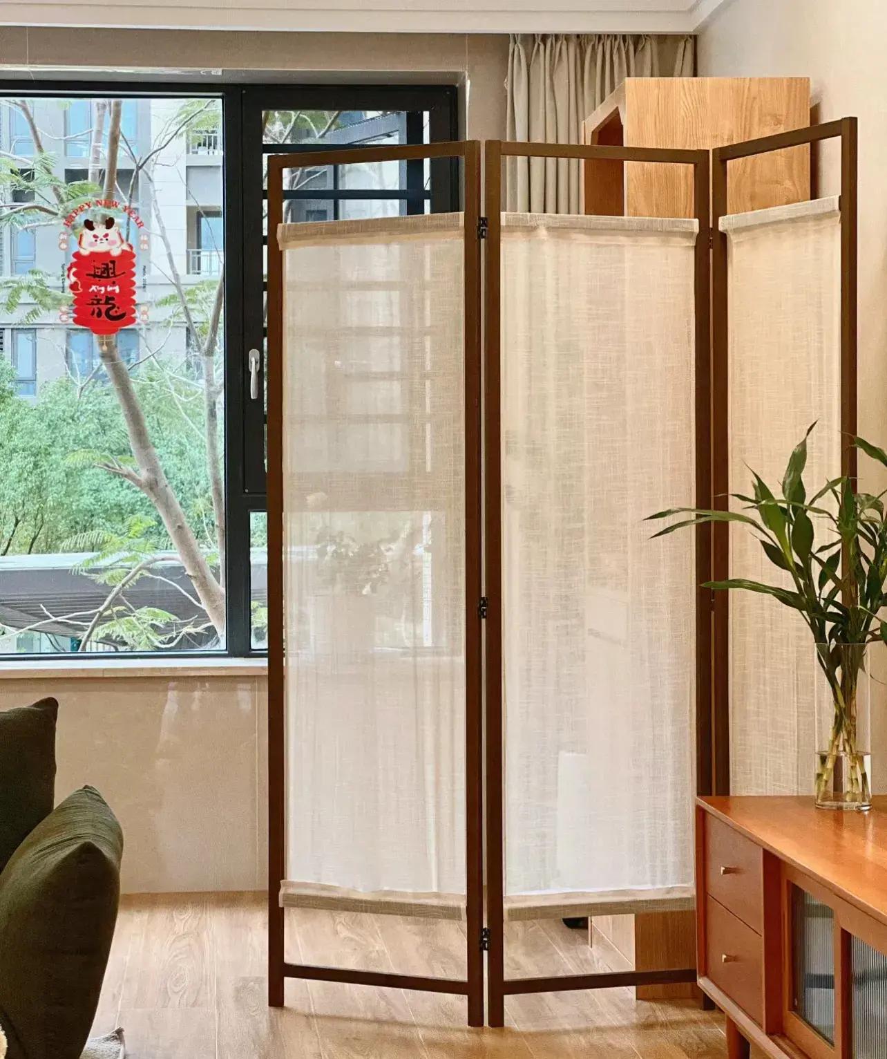來個屏風吧,還能順帶把電視周圍的線啊、機頂盒啊、路由器……給遮起來。