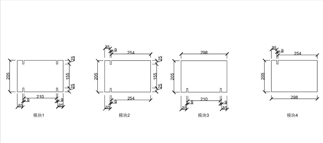共分四個模塊,模塊1用的最多,承擔主體部分;模塊2、4分別用在左右兩側;模塊3則用在底部和頂部收邊。