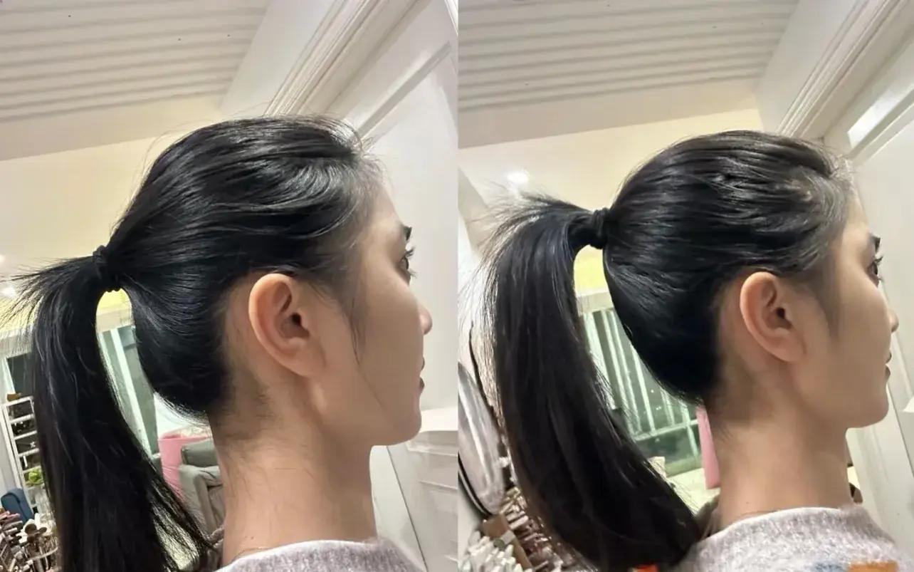 除了後腦勺,頭頂塌的也能用,一樣的方法只是換了個地方,又呈現出不一樣的效果,頭髮隨便一紮,都是很自然的高顱頂。