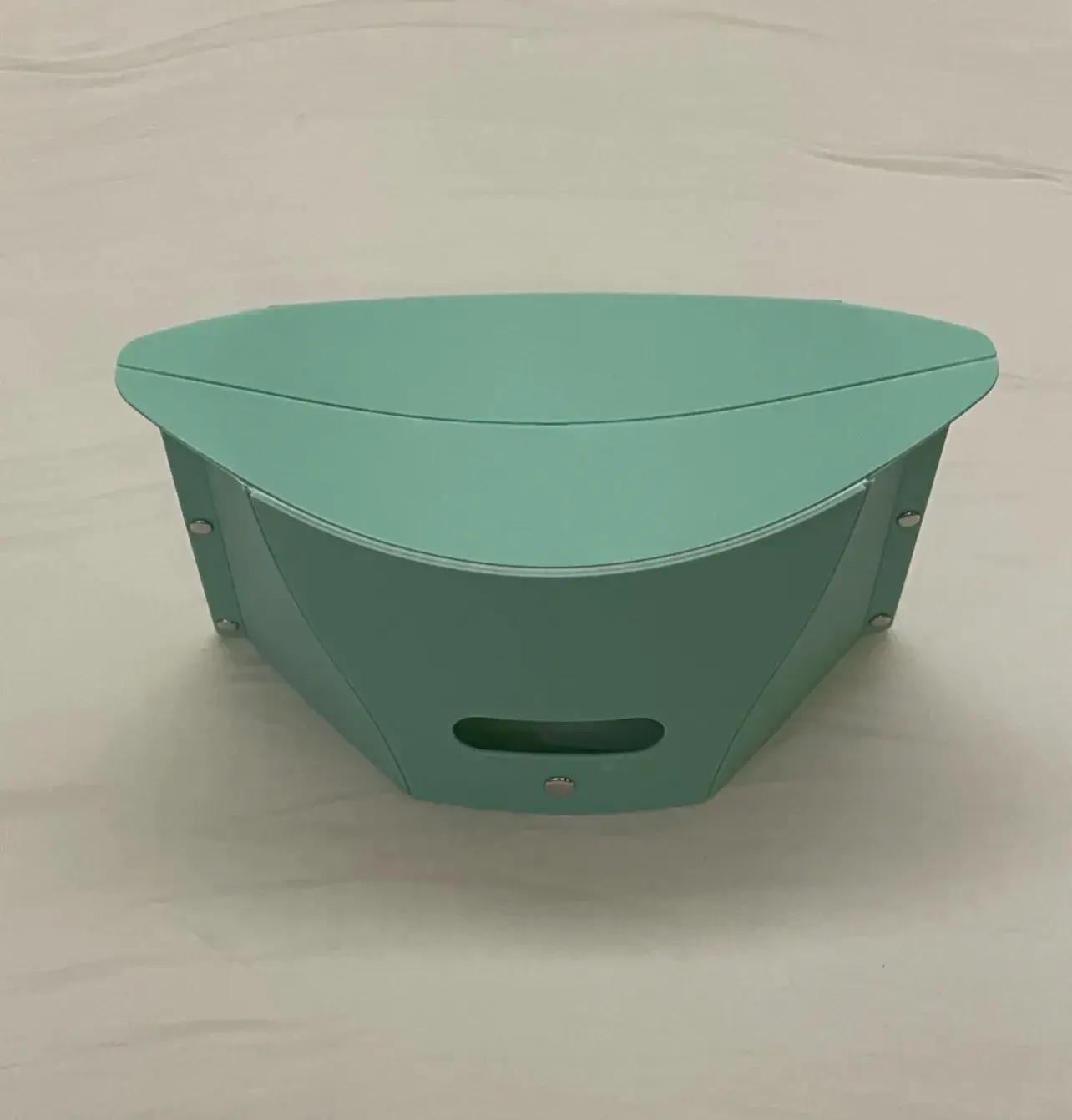用的時候反過去,下面撐開呈六邊形,上面的凳面壓下去還自帶弧度,坐上去很貼合屁股的形狀,甚至比普通平面的凳子還舒適。