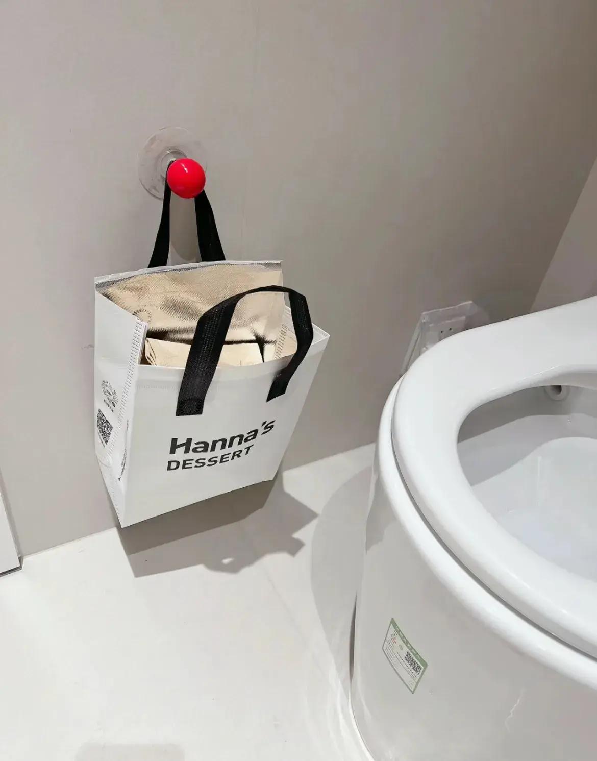 因爲買多了一個,就順手給衛生間也貼了一個,特殊時期就用來掛垃圾袋;